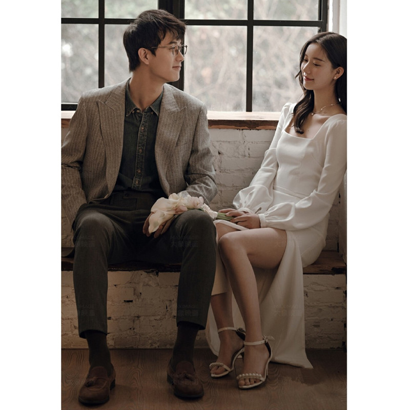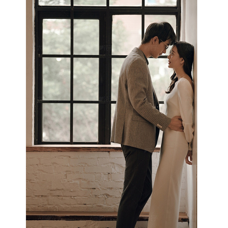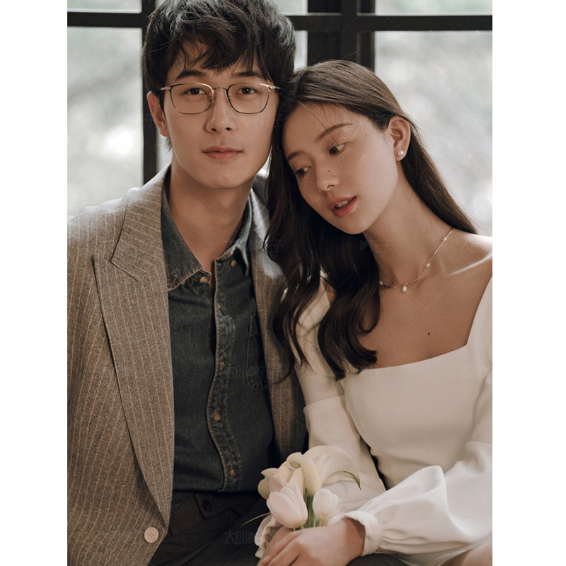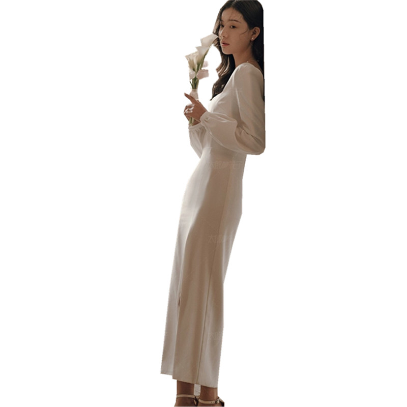 French-style light wedding dress, super fairy, slim, simple, travel photography, Mori long-sleeved, white, small man, certificate registration, small dress, spring