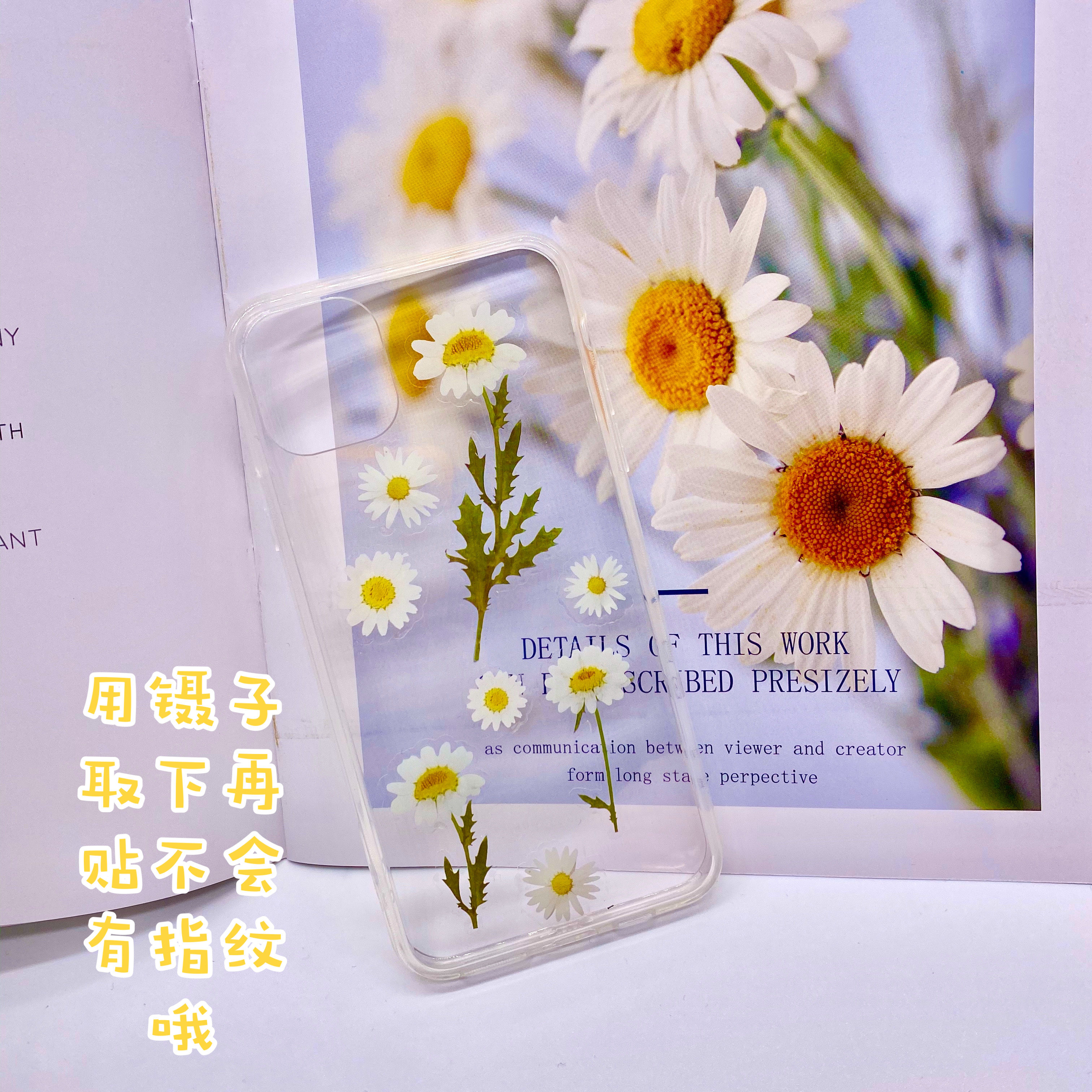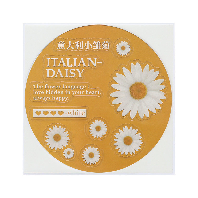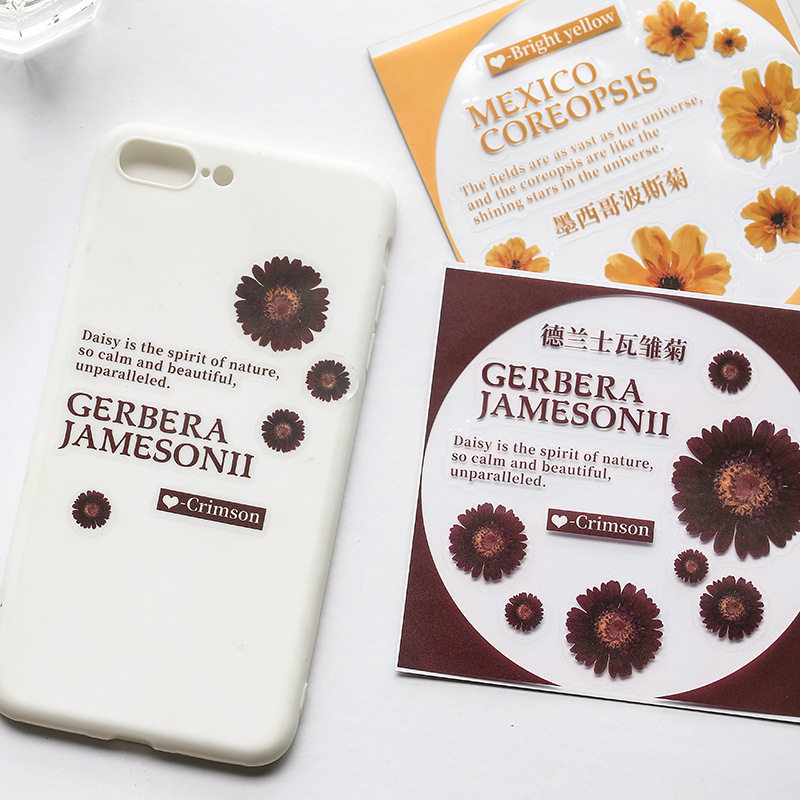 Waterproof Flowers Sticker Hand Ledger Material Small Freshener Plant Small Daisy PET Transparent Handbill Sticker Diy Phone Protective Shell