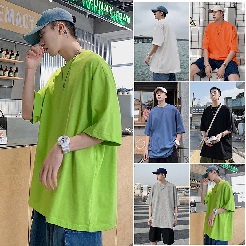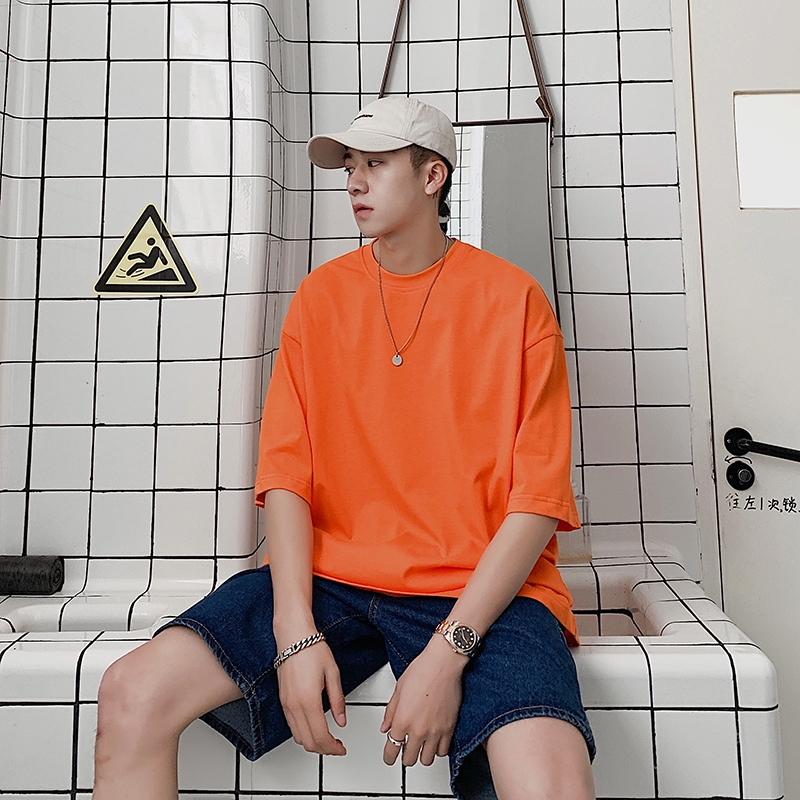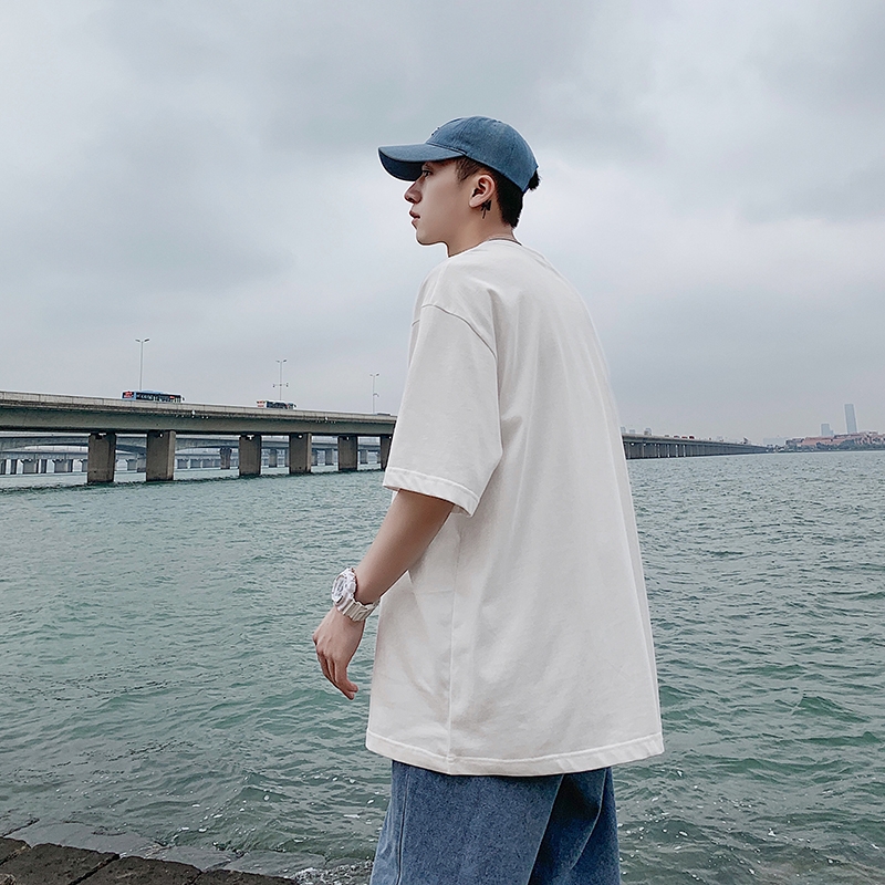 Harajuku short sleeve men's tide brand loose Joker 2022 new half sleeve trend ins port wind net red solid color T-shirt