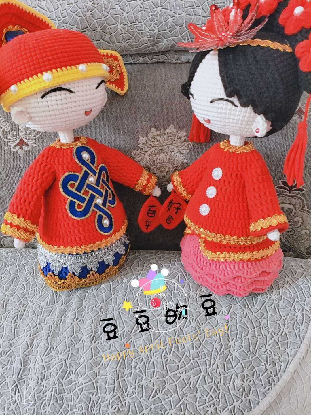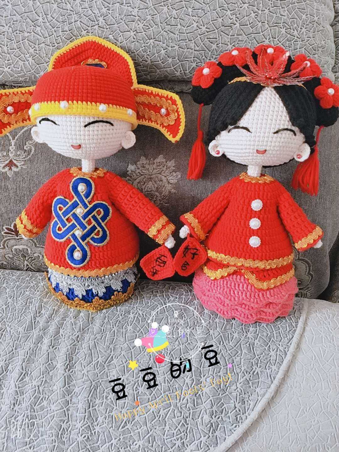 Mango home diy handmade crochet crochet classical wedding baby couple wool doll finished product - Taobao