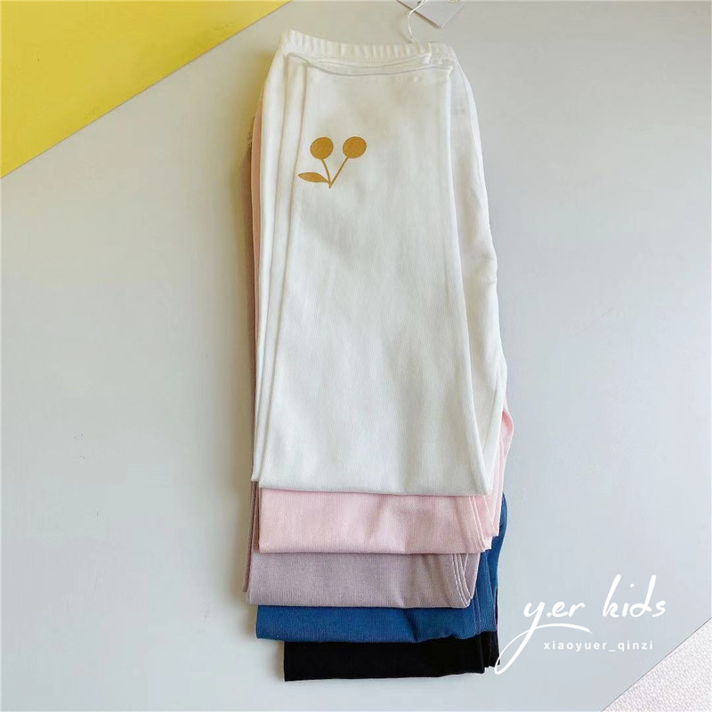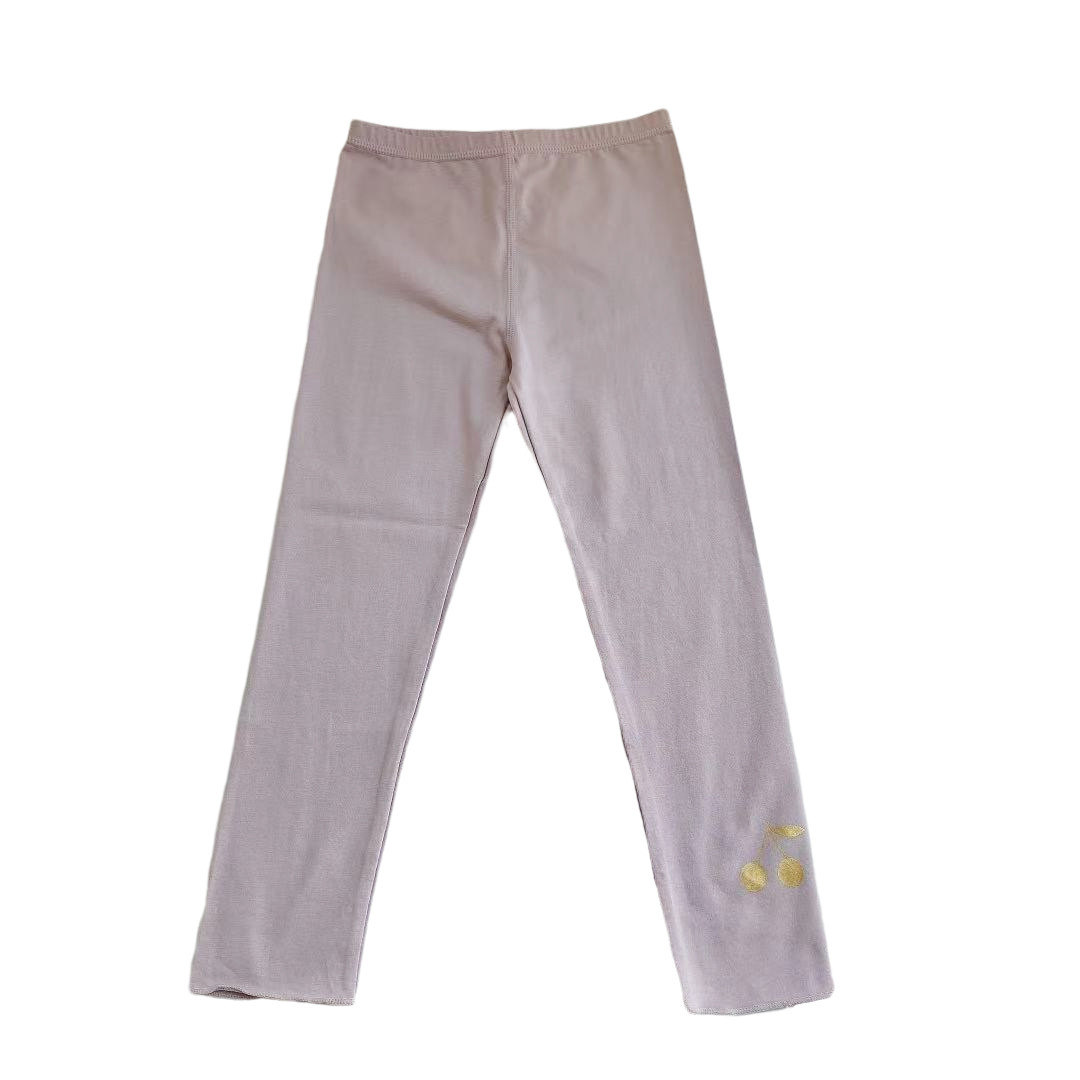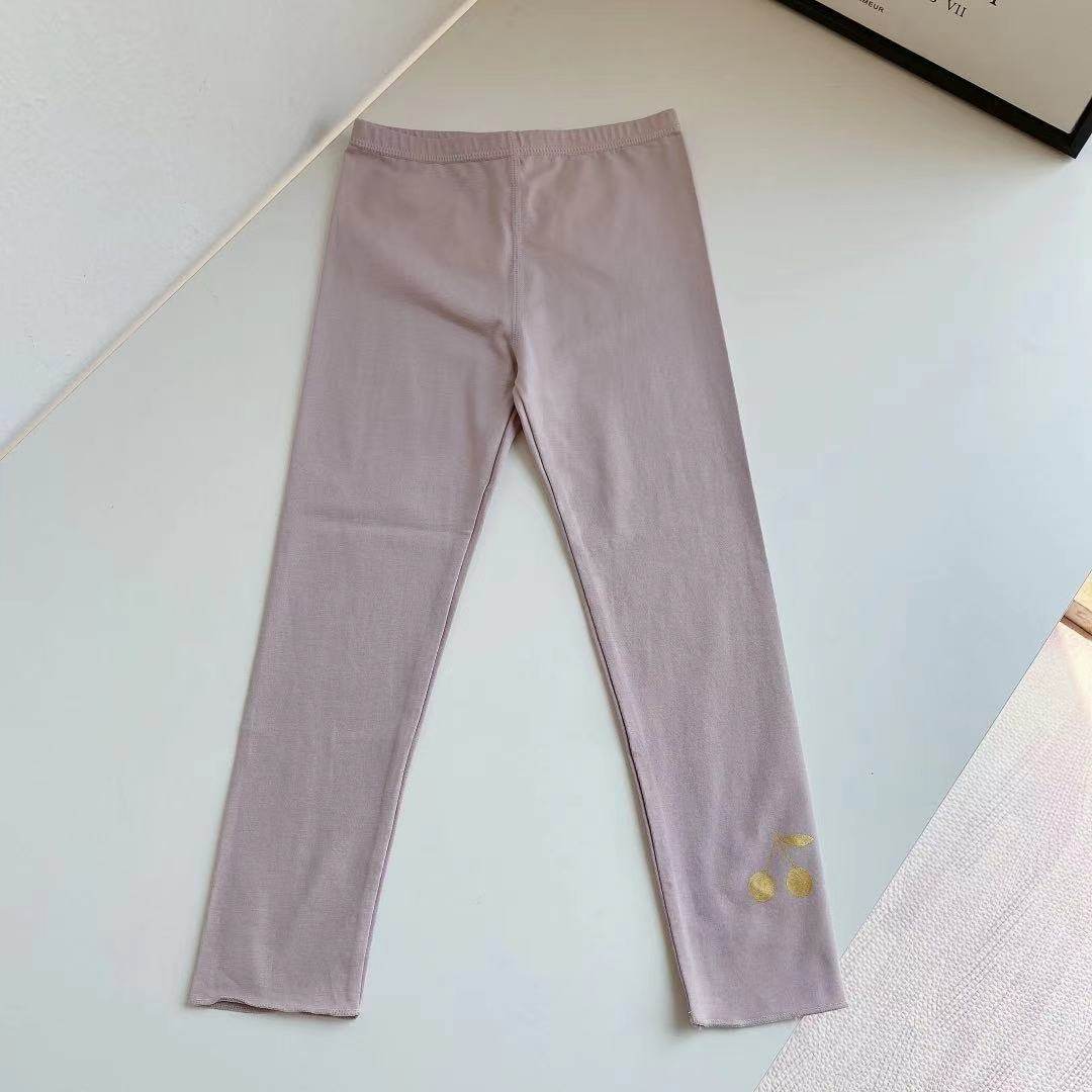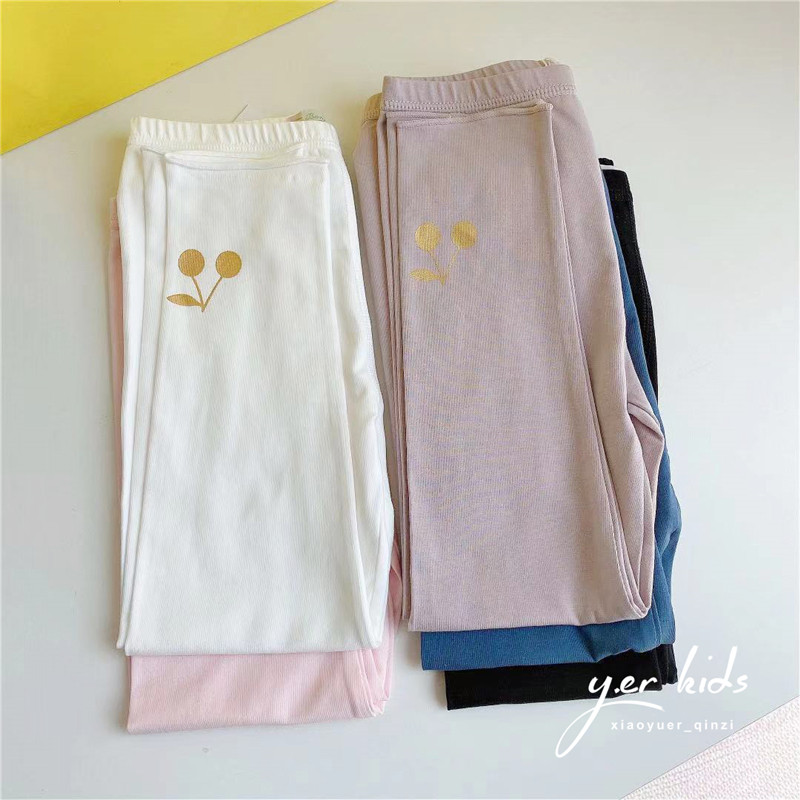 Five-color girls spring and summer thin leggings children solid color cherry print cotton trousers high-play comfortable pants
