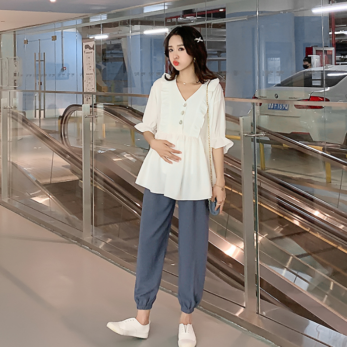 Pregnancy Woman Dress Summer Suit Summer Tide Moms Out Fashion Money Nets Red Pregnancy Moms Wave Bottling Pregnant Women Summer Clothing Two Sets