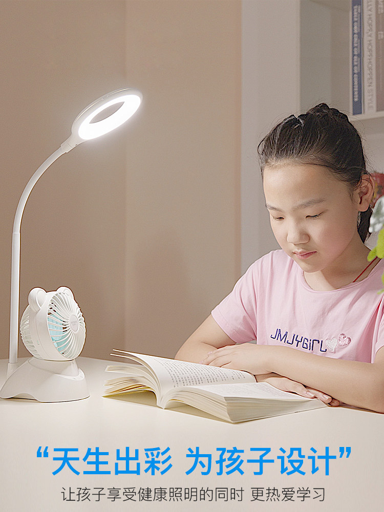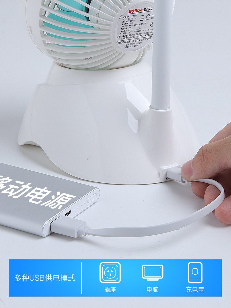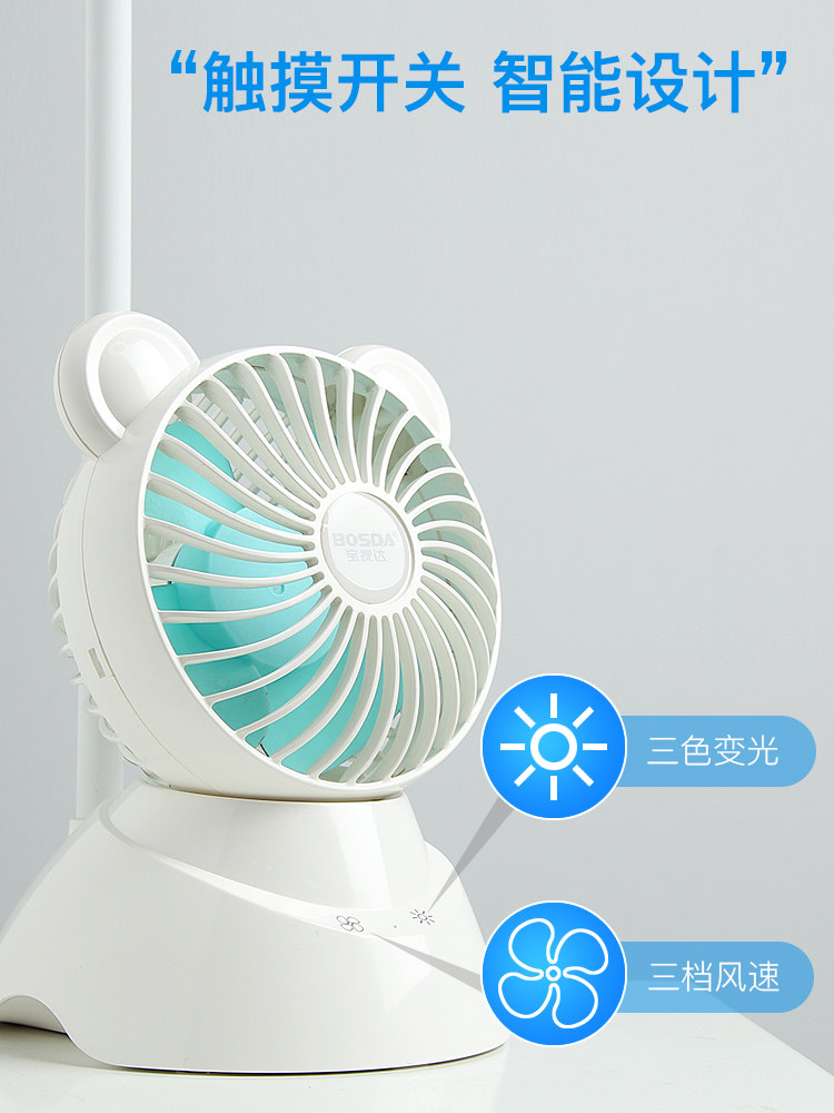 Baoshida small fan eye protection desk lamp college student dormitory children's multifunctional nightlight charging plug-in dual-purpose