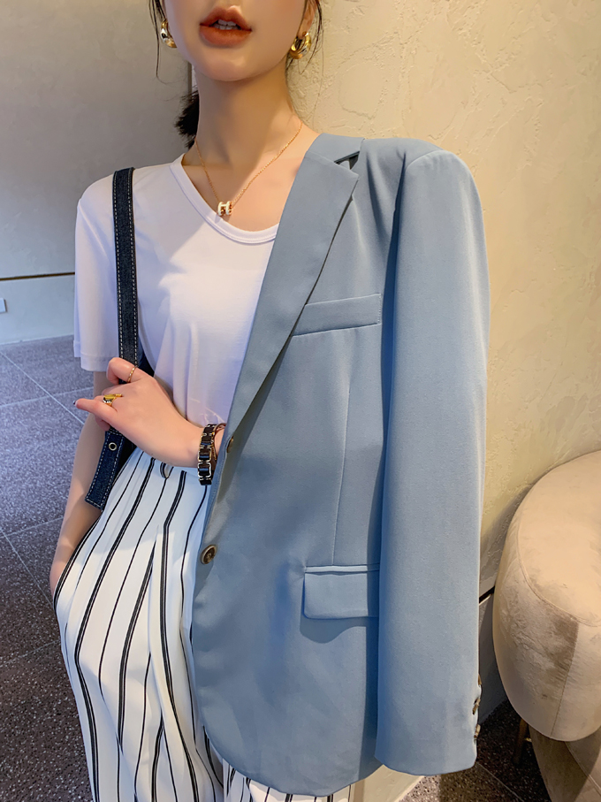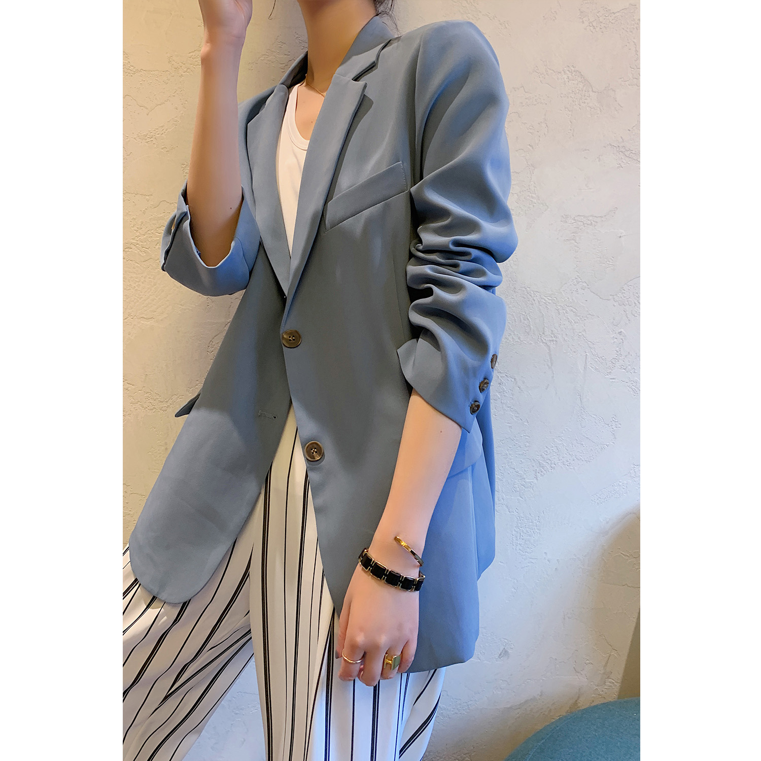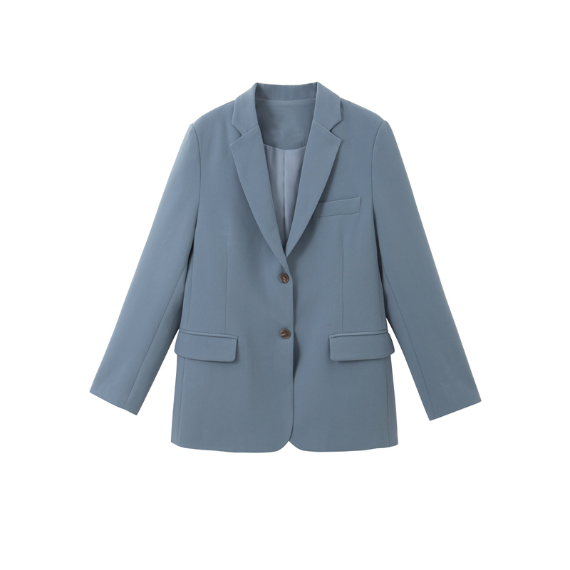 6-fold retro-foggy blue suit jacket female design sensation Little Korean version easy Inn Wind long sleeve casual Western suit