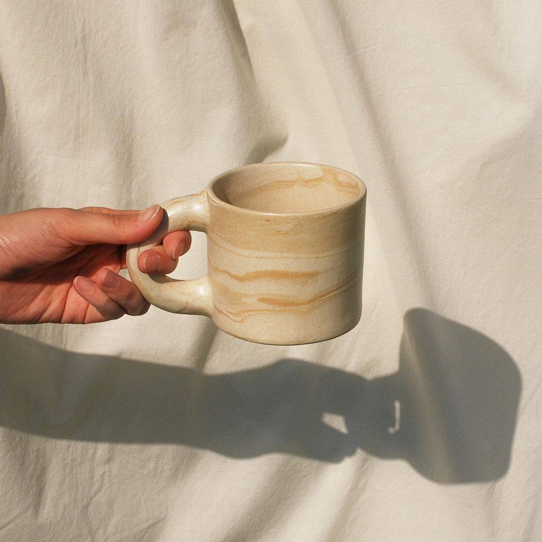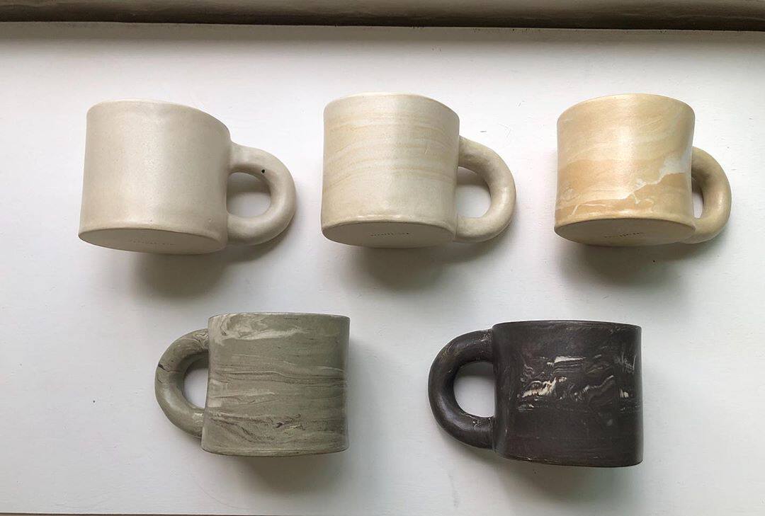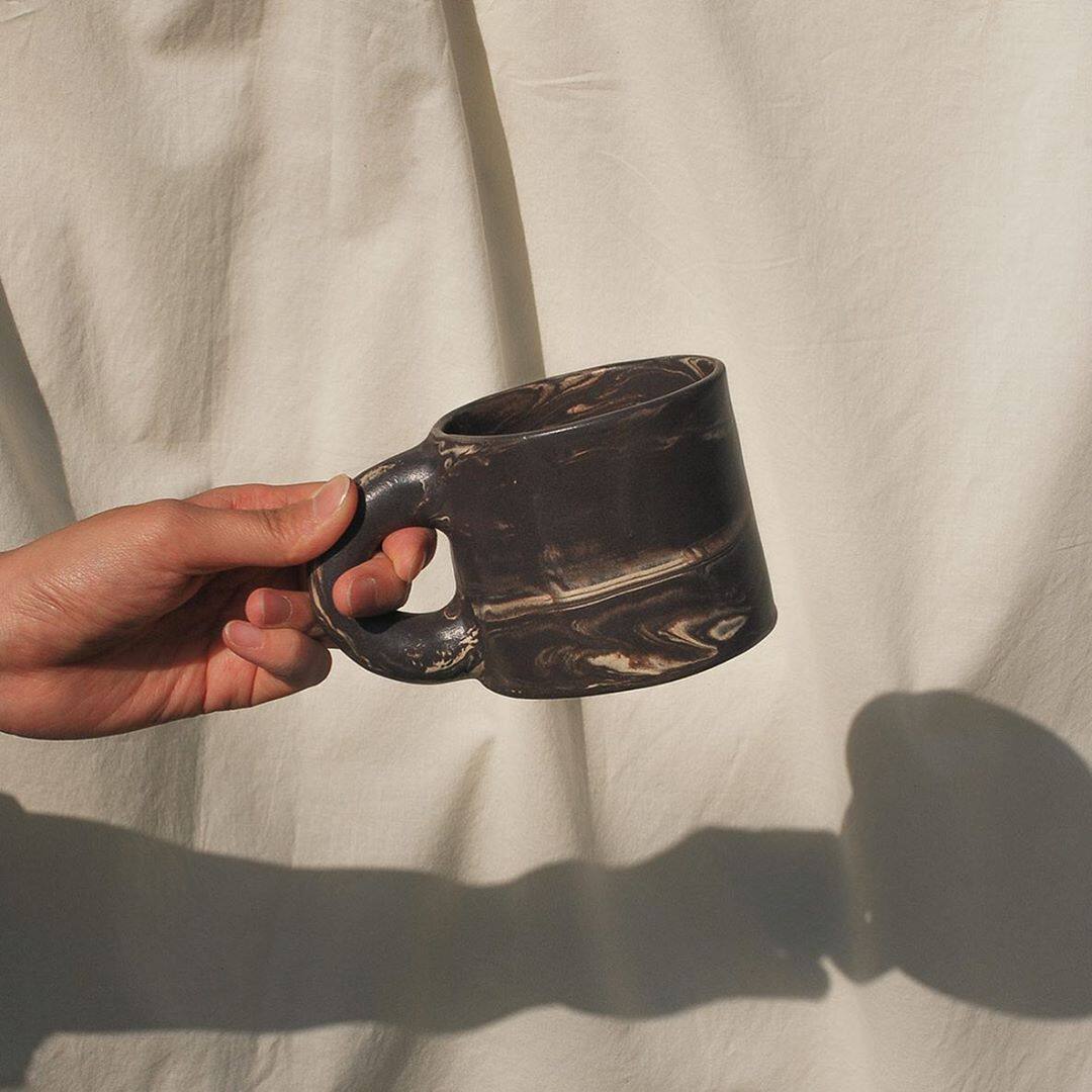 TheTavern Korean Pollygarden design Marble mixed color 4 color Marble fat handle mug