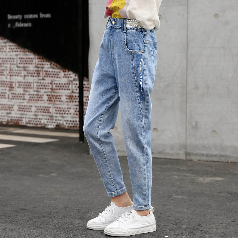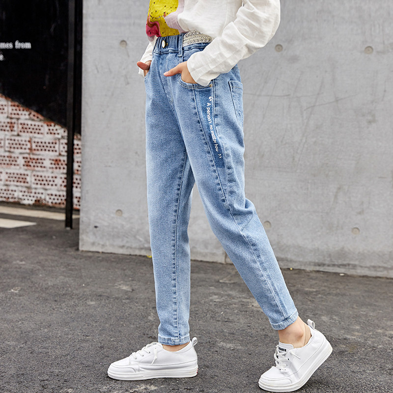 Girls ' pants spring and autumn thin section 2021 new foreign school children's children's big children's spring spring spring denim cigarette pants