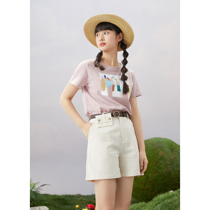 Purple Culvert Summer Dress New Short Sleeves T-shirt Woman Loose short jacket Round Collar Minimalist T-shirt Pure Cotton Inner Hitch Tide