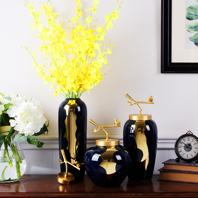 New Chinese Light Luxury View Town Ceramic Vase Fittings Living Room Seasonal Studio Villa Home Decoration