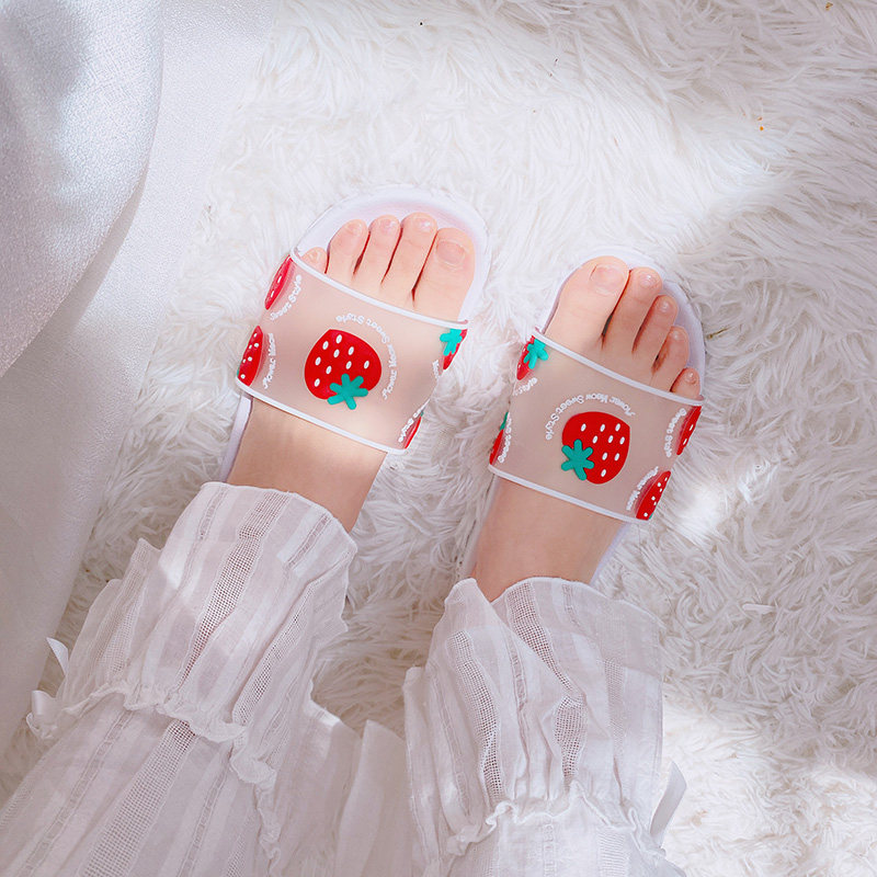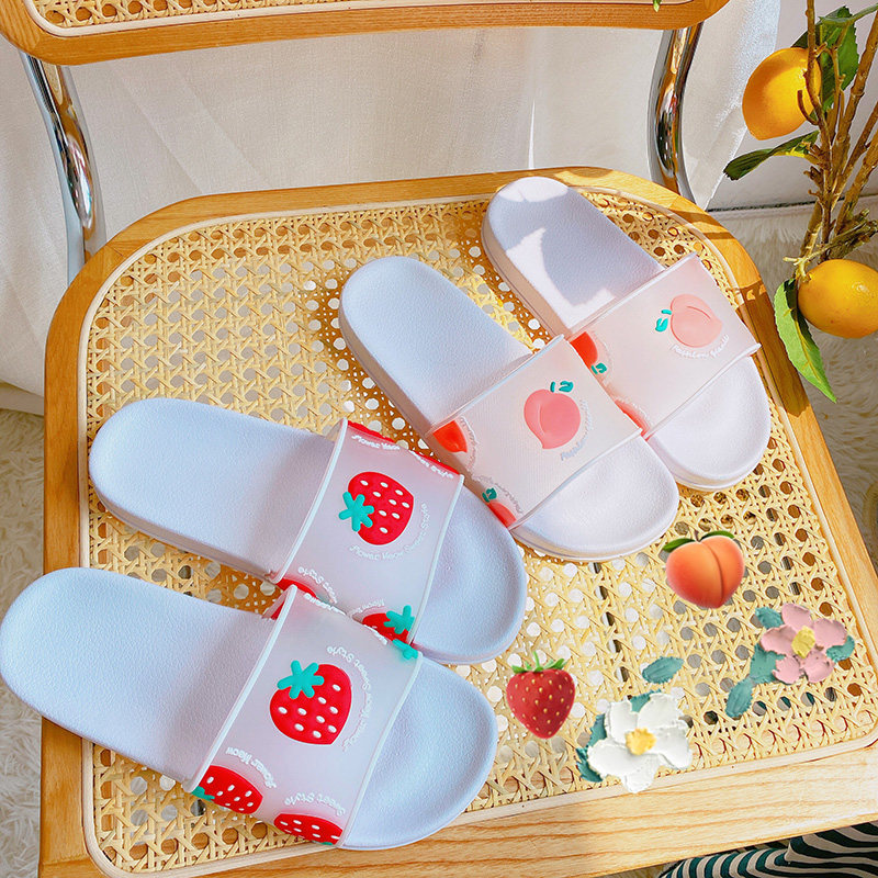 Korean version of the beach one-word slippers summer small fresh ins wind cute fruit strawberry peach sandals and slippers for women to wear