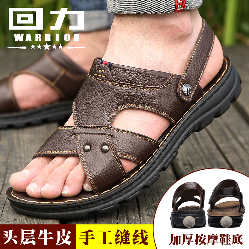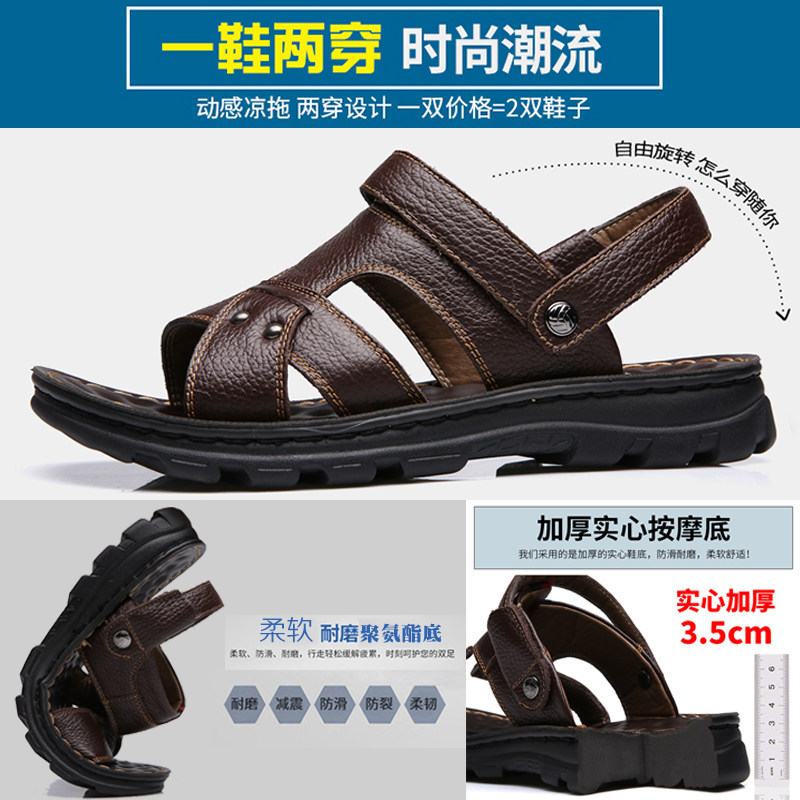 Back Force Sandals Men's Summer New Genuine Leather Casual Beach Shoes Men's Soft Bottom Non-slip Dad Dual-use Cool Slippers