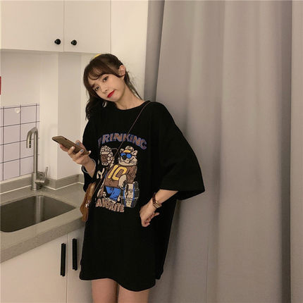 Summer Korean version of net red cotton medium and long version short sleeve T-shirt women's half sleeve ins tide super fire Joker loose large size fat mm