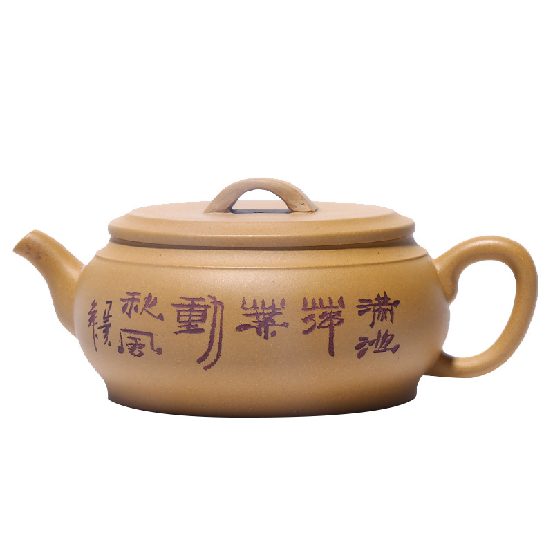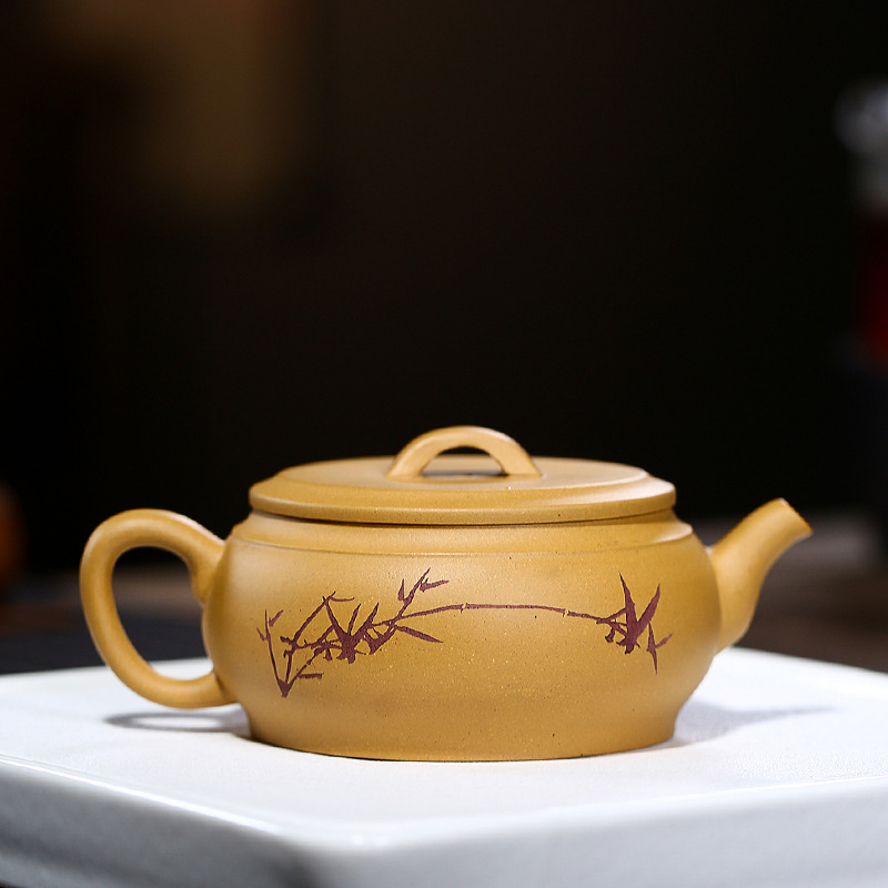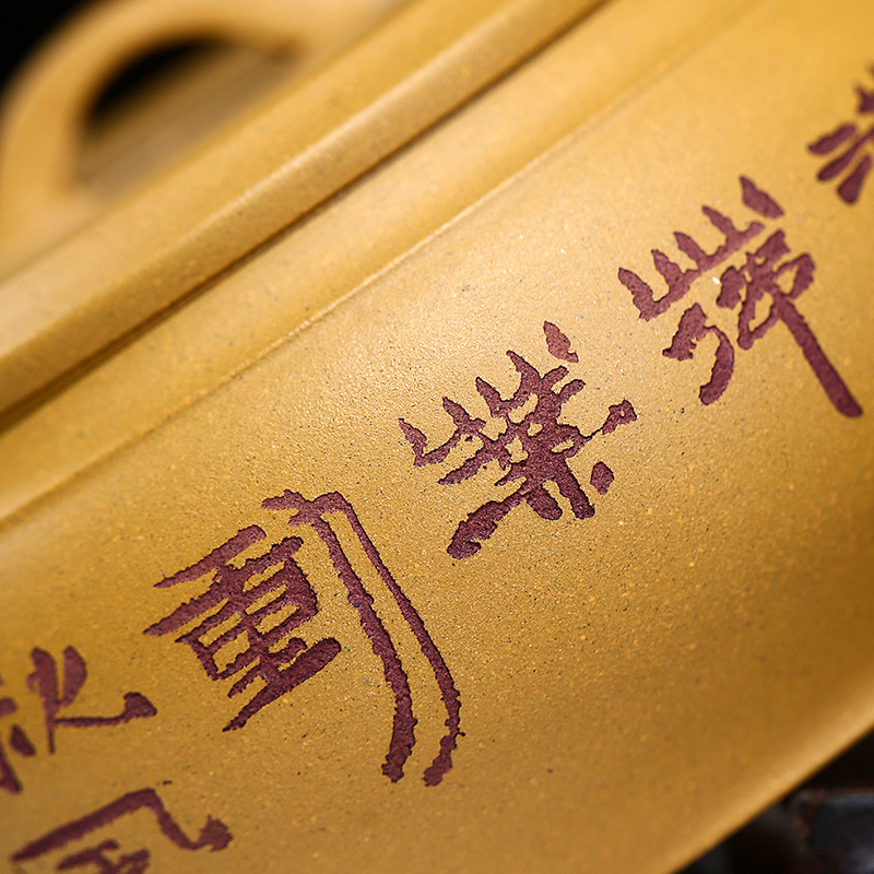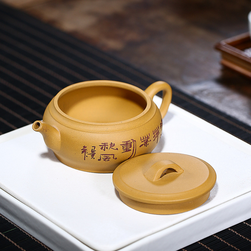 Yixing purple sand pot famous all handmade raw ore gold section mud sketch 200cc ball hole engraved double drum inner wall seal