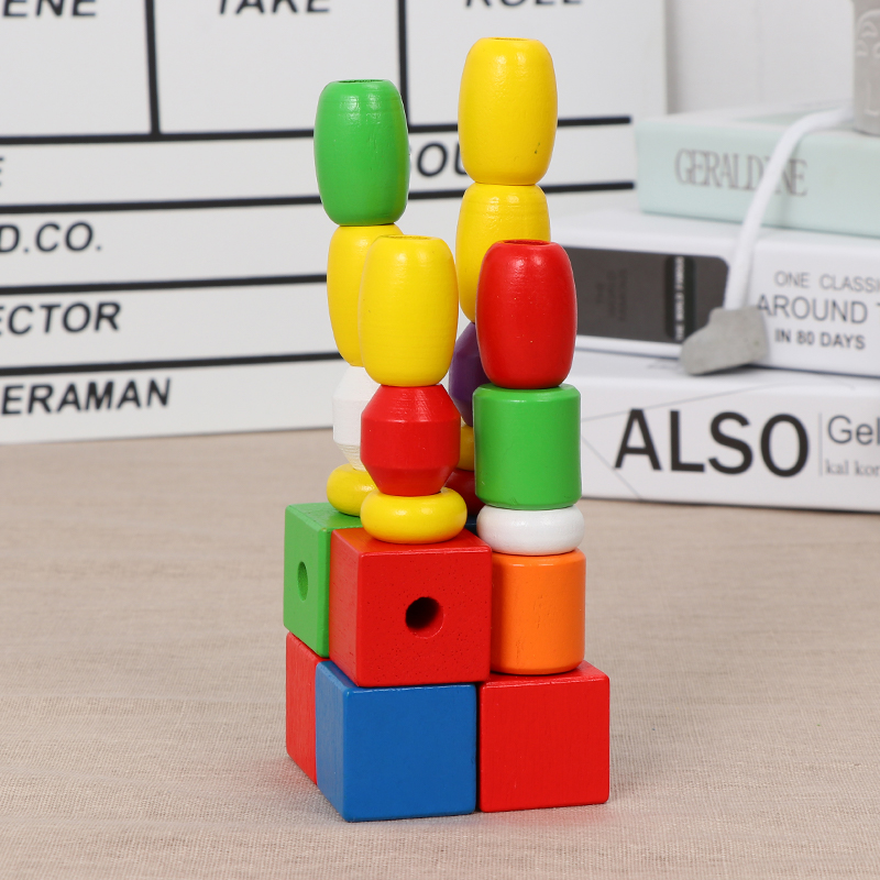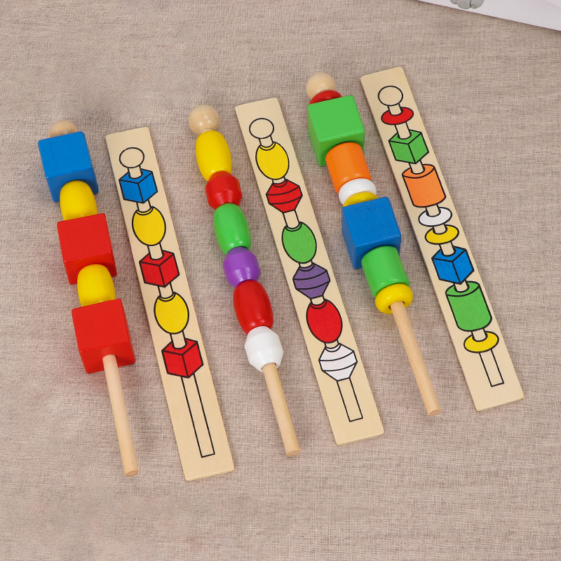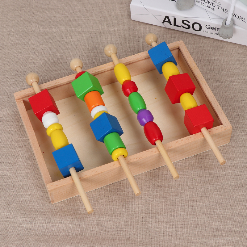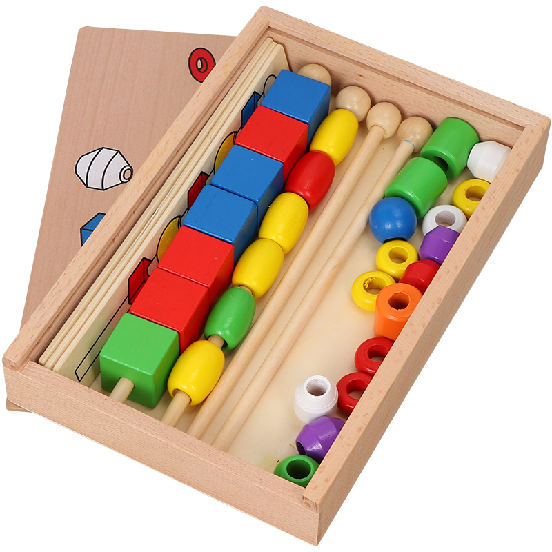 Montessori intellectual string beads 1 - 3 year old children's toy three - color string wears beads early teaching Mon's teaching tools