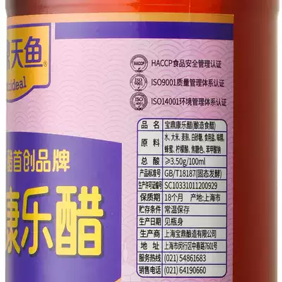 Shanghai Baoding Kangle Vinegar 500ml * 2 bottles of rice vinegar edible vinegar shrimp crab vinegar steamed dumplings dipped in vinegar cold vinegar sweet vinegar