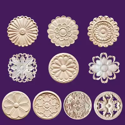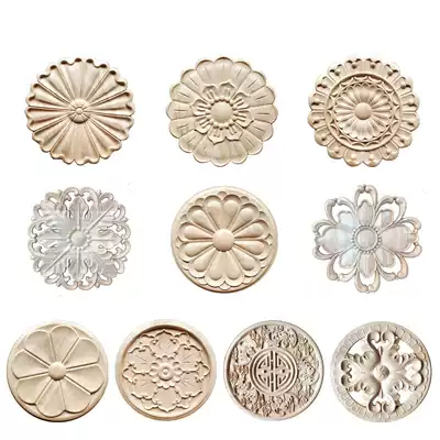 Wood carving round flower piece Solid wood Chinese suspended ceiling Large round plate decal ceiling Wood carving bed head background wall decoration