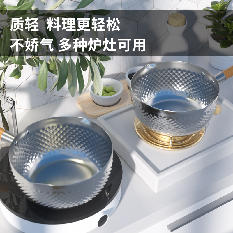 Japanese style snow flat pot 304 stainless steel uncoated instant noodle pot soup pot Induction cooker Milk pot small cooking pot Household