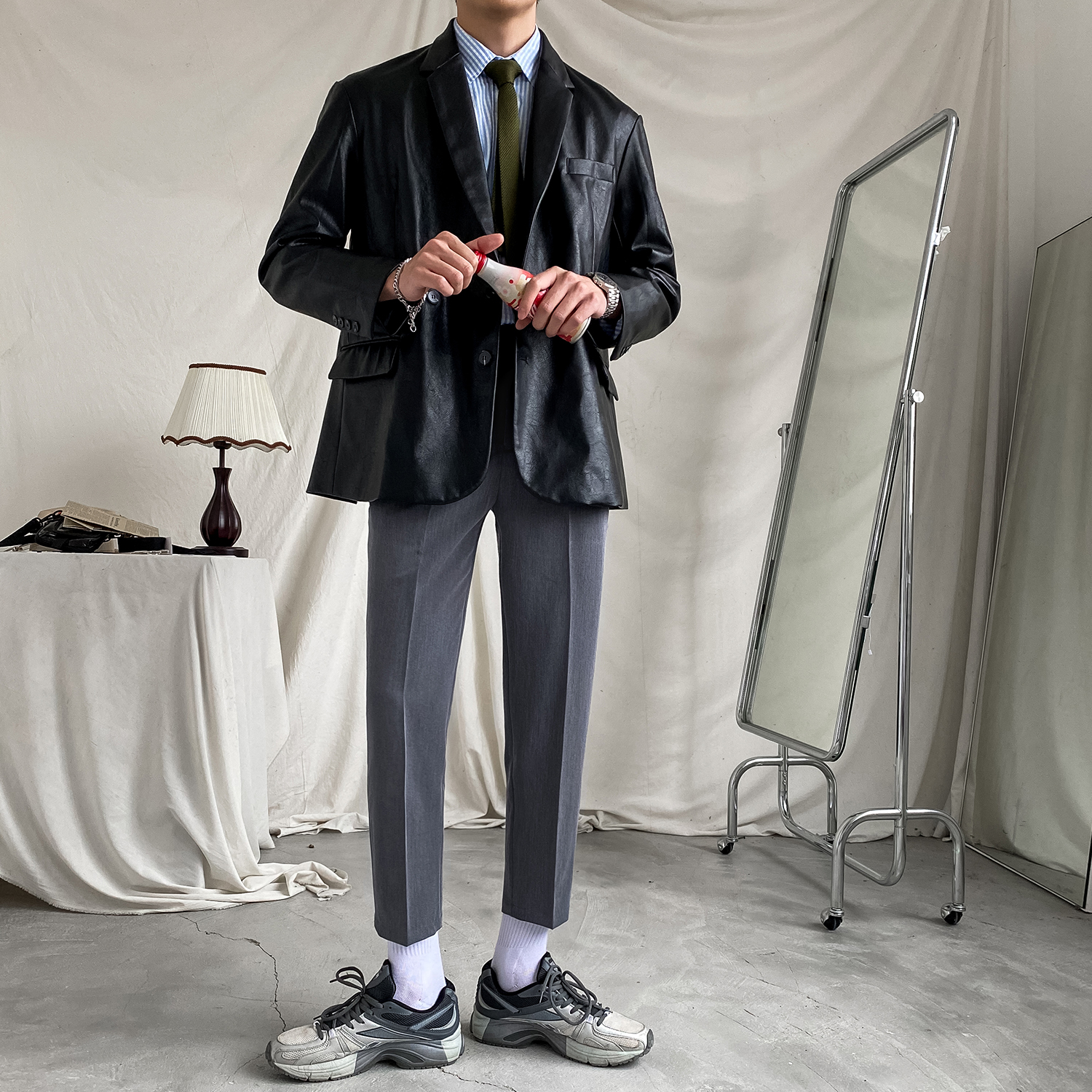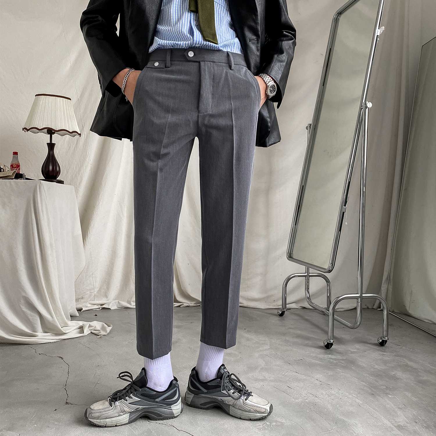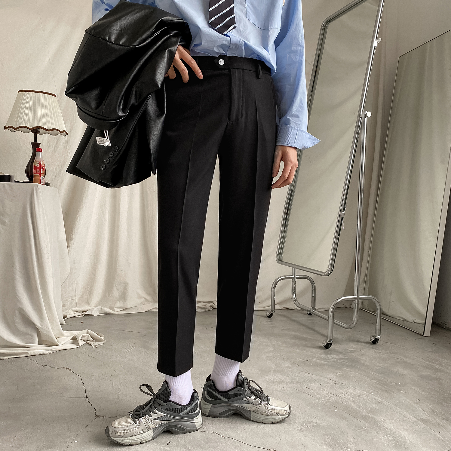 Free Ironing 90% Pants Men's Pendant Feel Small Western Pants Handsome Korean version Trend Trendy Small Feet Summer Thin style Casual Pants