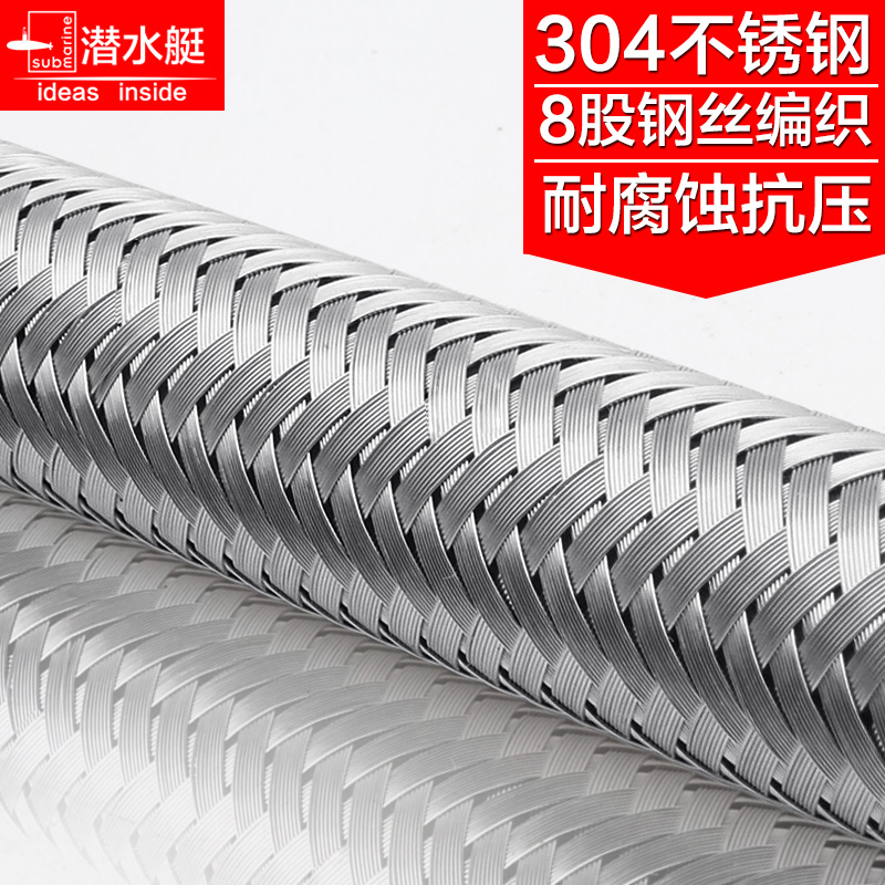 Submarine faucet inlet pipe extension pipe inner and outer wire 4 points connection pipe 304 stainless steel hose automatically cut off water
