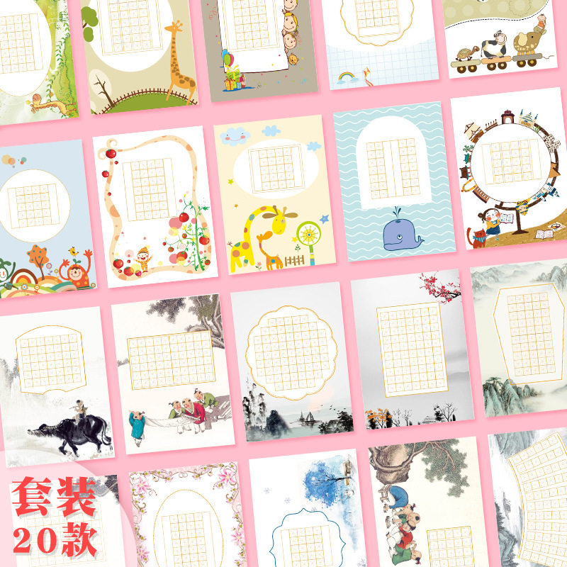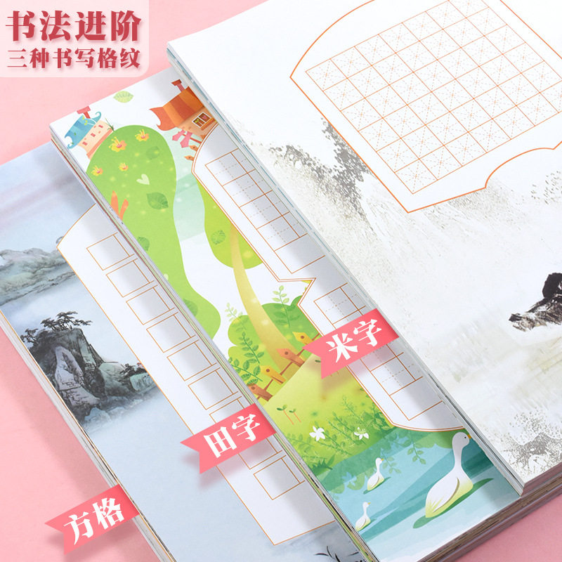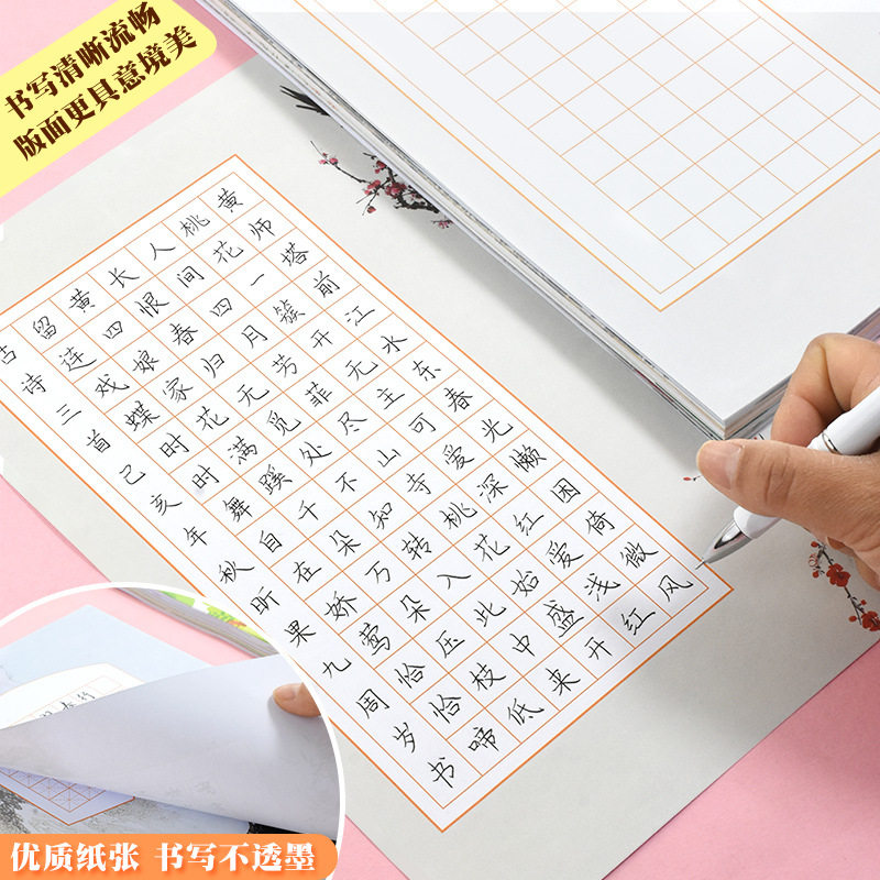 200 sheets a4 hard pen calligraphy paper rice character grid works paper Chinese style revival ancient poems five words and seven words competition special paper primary school students pencil pen writing practice paper beginners practice words paper