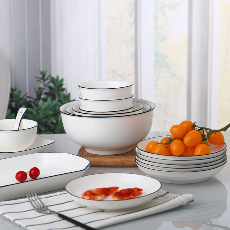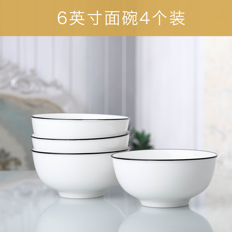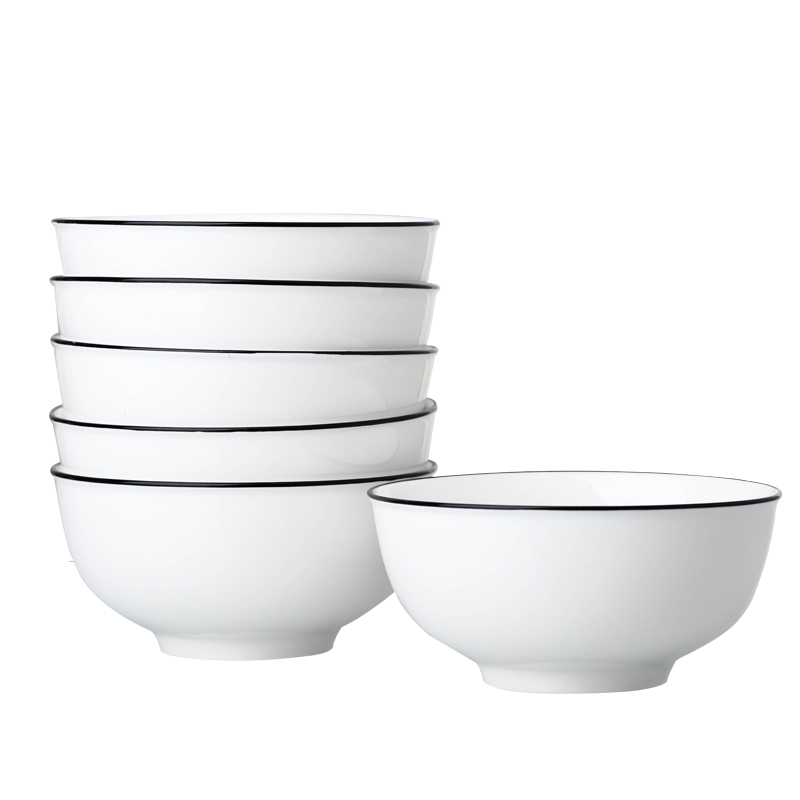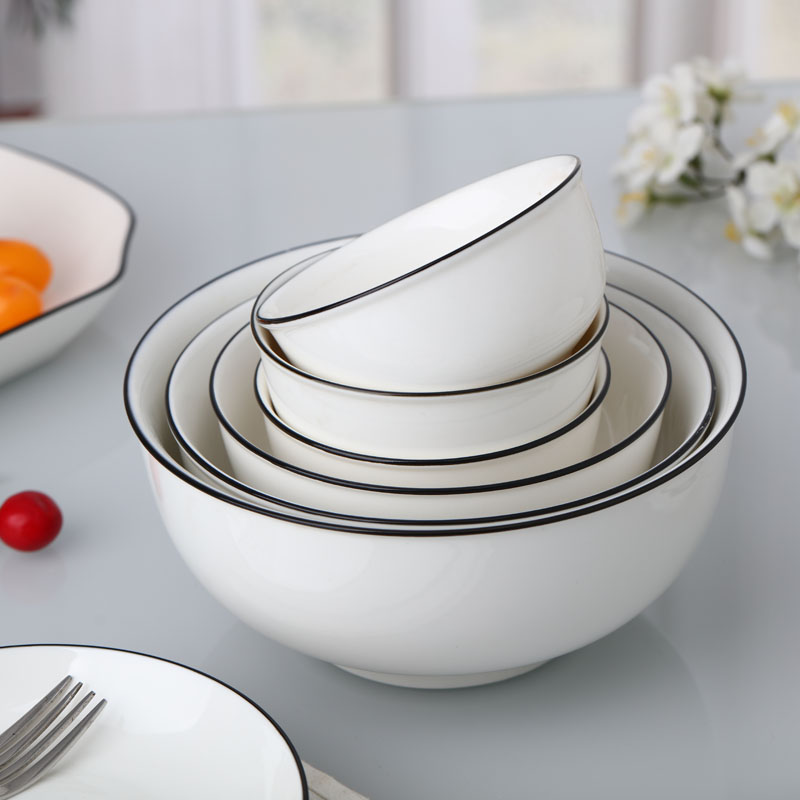 6 inch noodle bowl Household large rice bowl Nordic style ins ceramic rice bowl soup bowl Simple black edge tableware