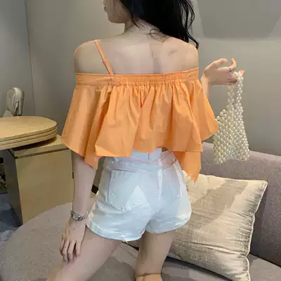 2021 new summer ruffled shoulder V-neck shirt sling design sexy niche asymmetric top