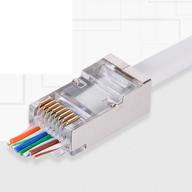 LN-SJT06-TP Six-Category Through-Hole Shielded Network Crystal Head H65 Brass Contact Gold Plated Chip
