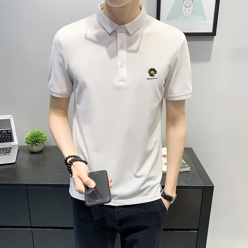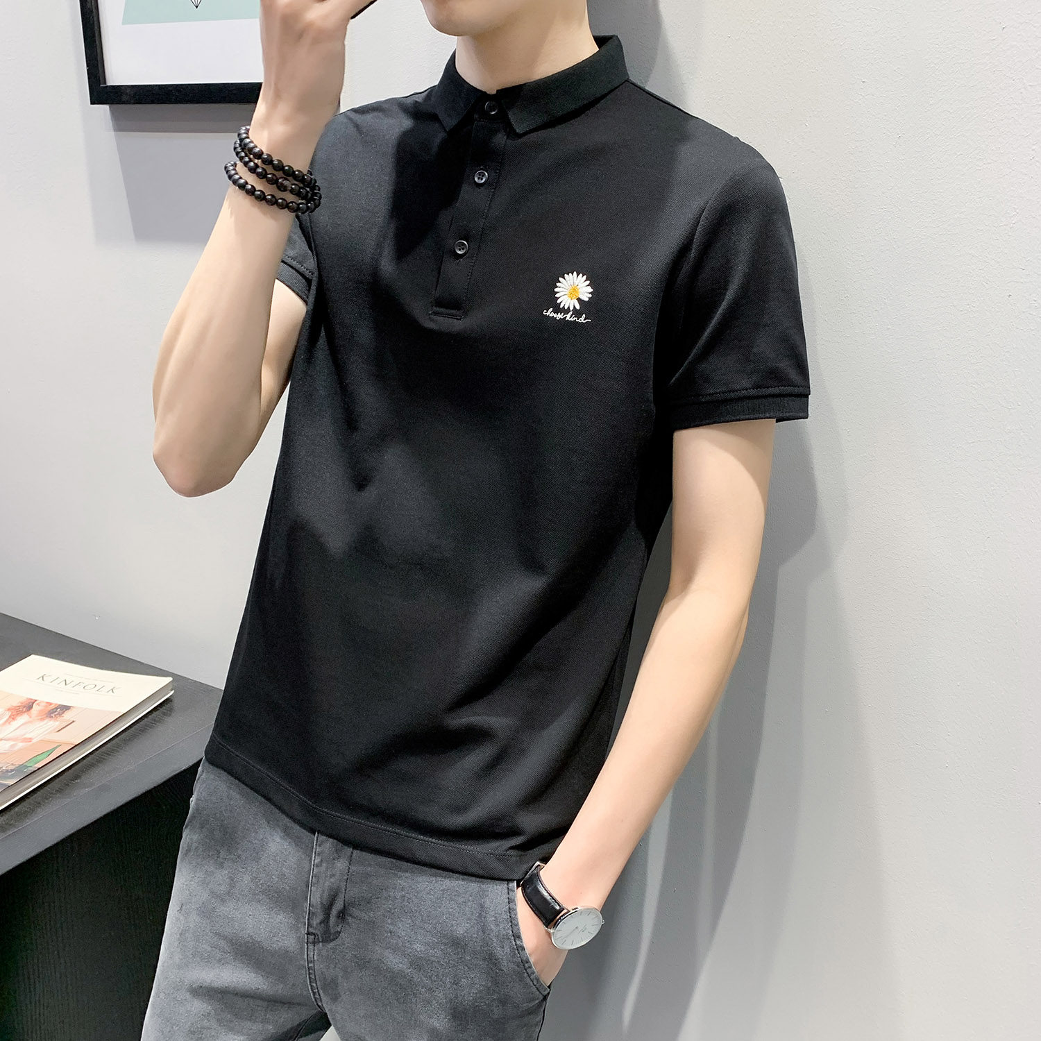 POLO shirt men's collared short-sleeved daisy embroidery T-shirt casual Korean style summer top half-sleeve business T-shirt