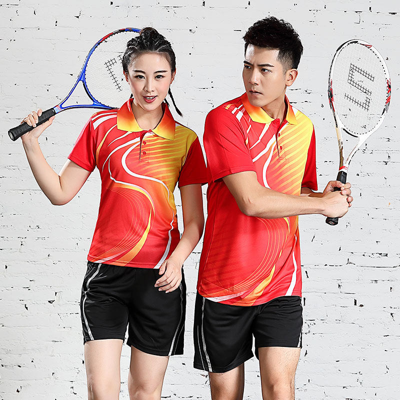 Gradual Layer Badminton Suit Short Sleeve Clothes Men's Badminton Suit Women Blouse Summer Badminton Competition Sportswear