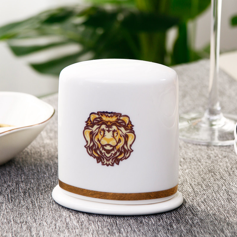 Babylon Feast Atmospheric Lion King Sketch Gold Bone Porcelain Toothpick Cylinder Babylon Feast Small Number Bone Porcelain Toothpick Holder