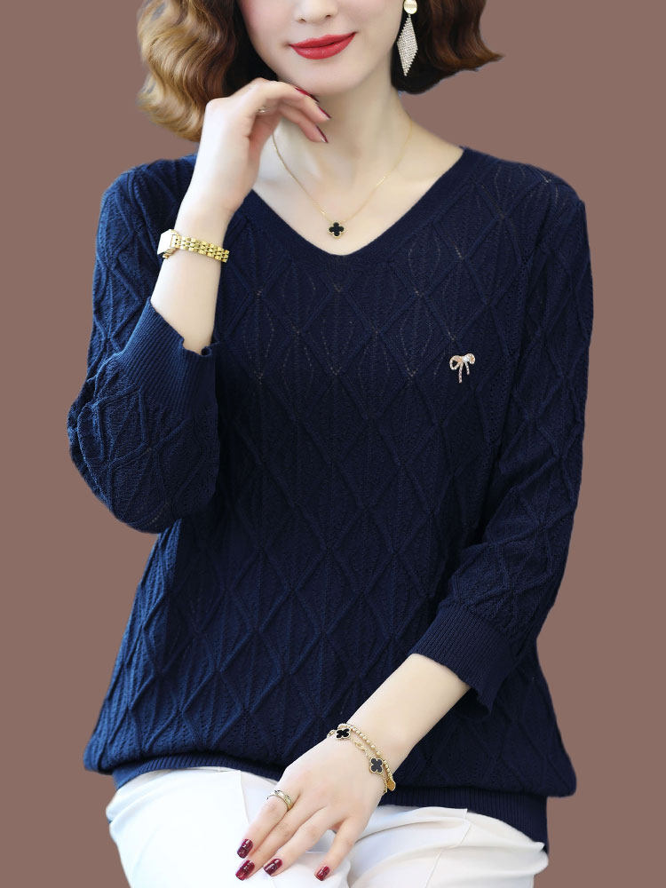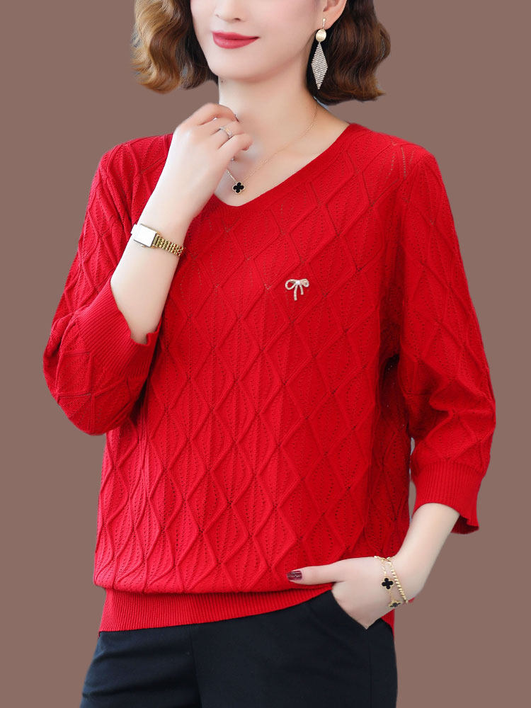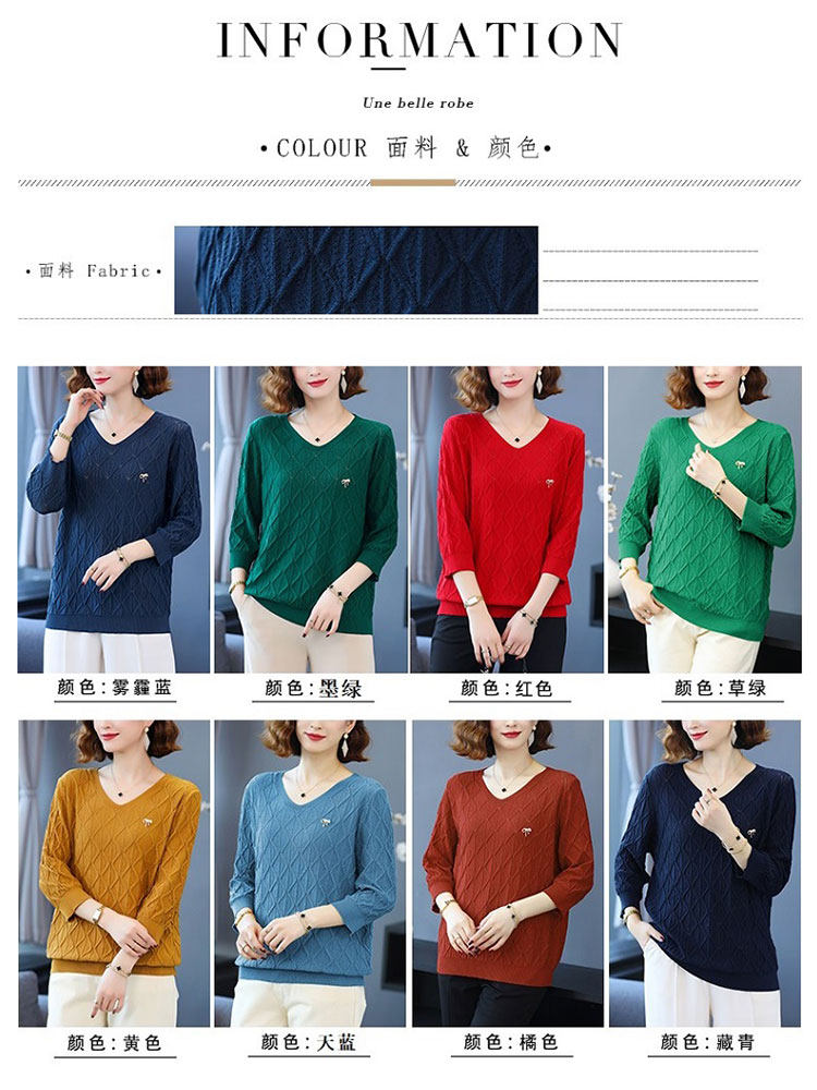 Hengyuan fat plus large sweater knitted shirt in 2023 summer explosion loose V - collar seven - point sleeve tops
