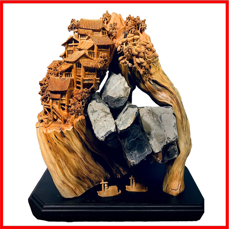 Cliff Bergin Silk Nanu Wood Small Leaves Purple Sandalwood Carvings Flowers And Birds Landscape Engraving Root Carving of Handicraft Artwork