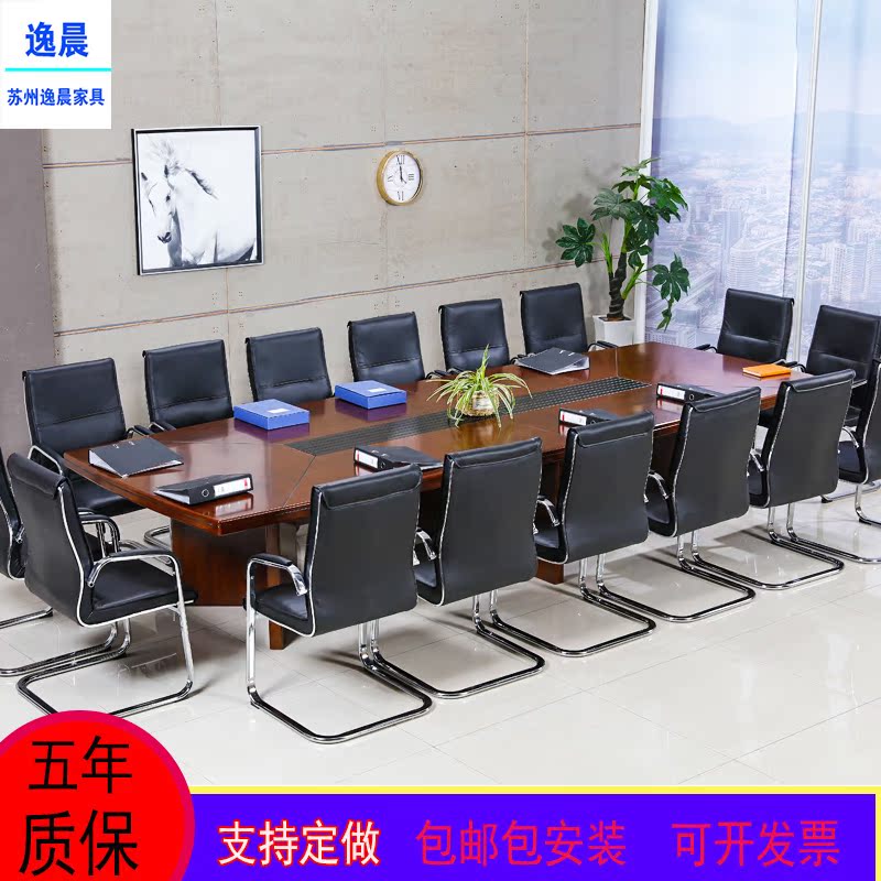 Modern simple office furniture paint conference table solid wood veneer large conference table bar table and chair combination