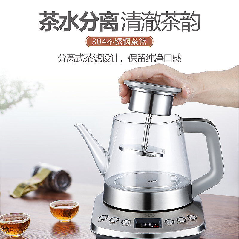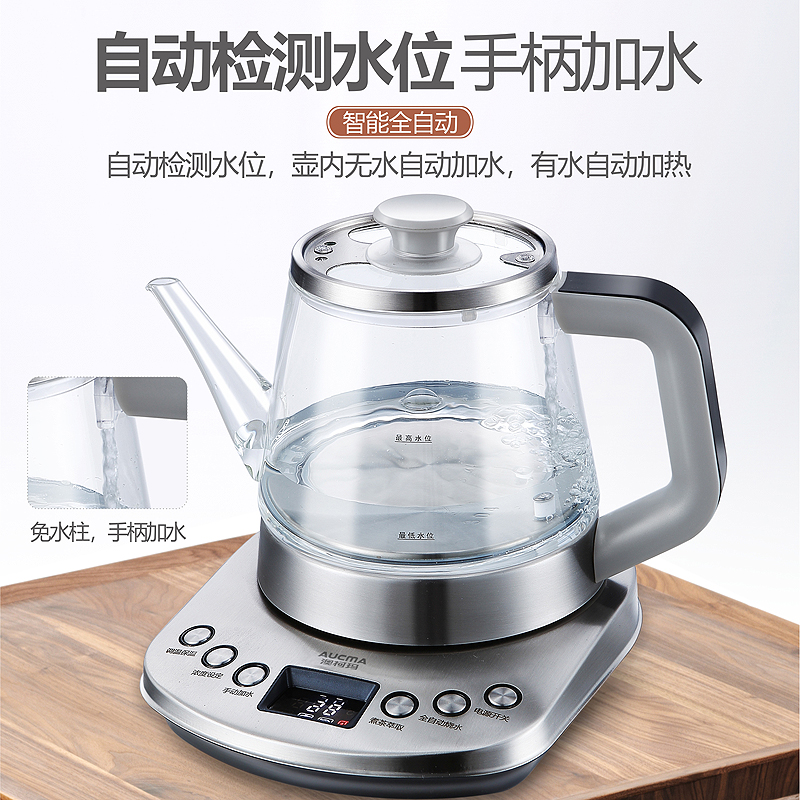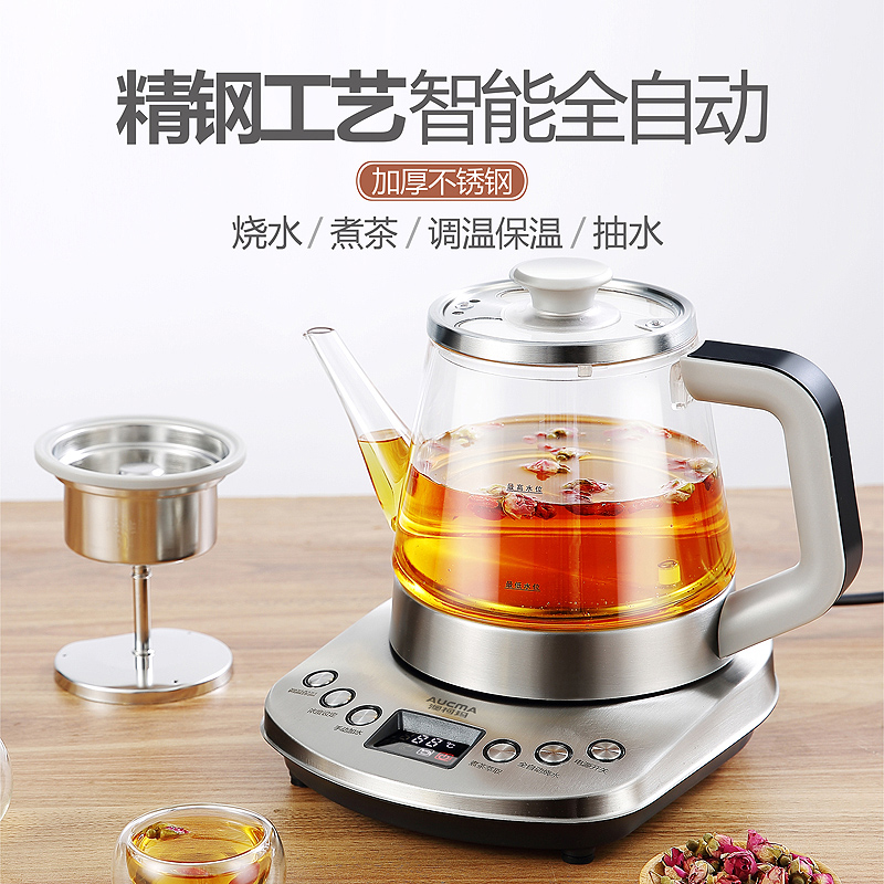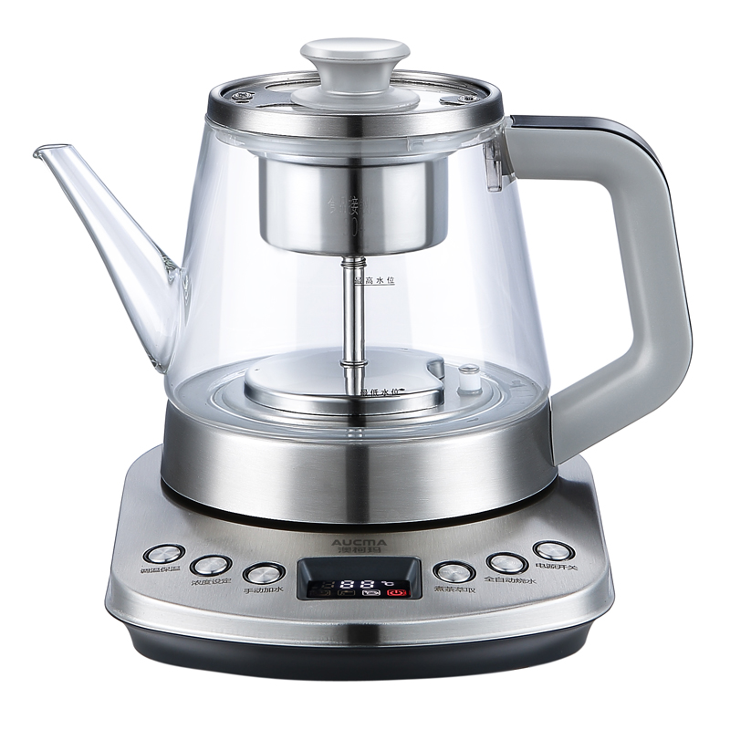Aucma fully automatic bottom water electric kettle glass steam spray tea maker pumping water and boiling water tea maker