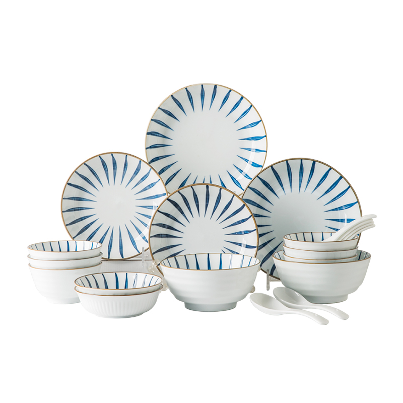 Yijia IJARL Japanese tableware set Ceramic bowl dish set High temperature porcelain home gifts 20 Bluegrass