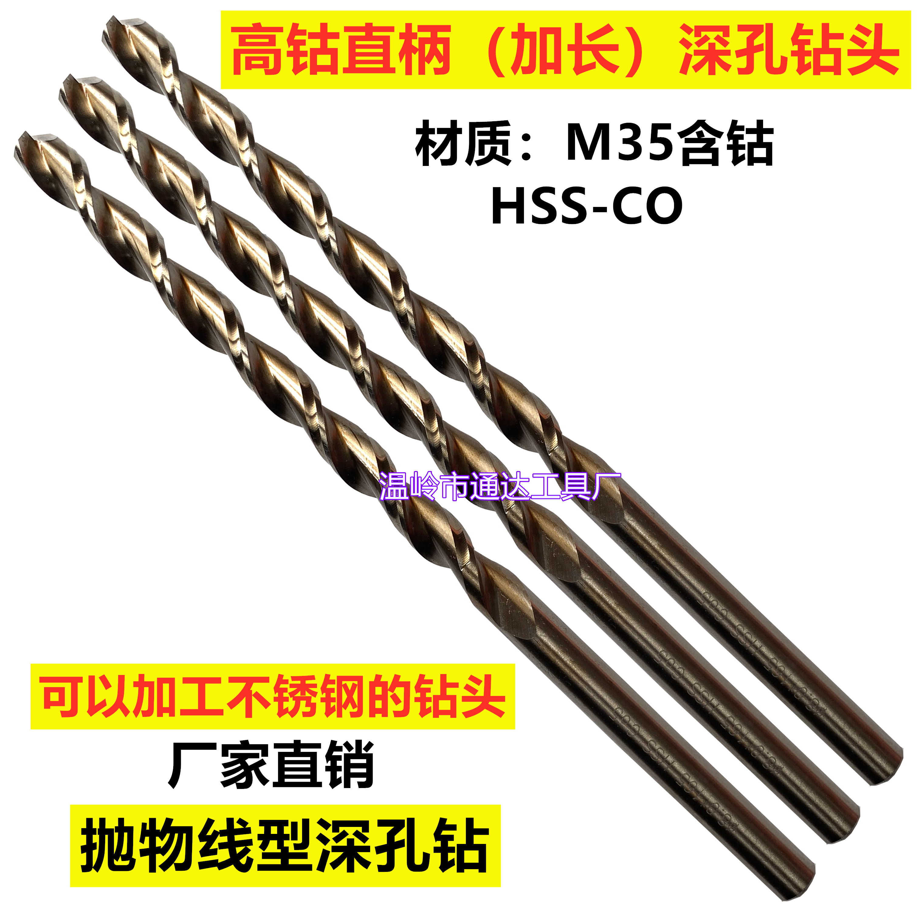 M35 with cobalt lengthened special length straight shank deep hole drill parabola twist drill stainless steel special drill standard lengthened