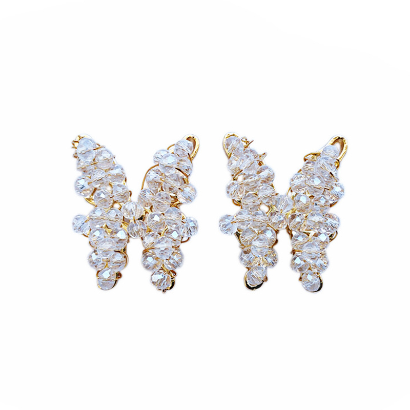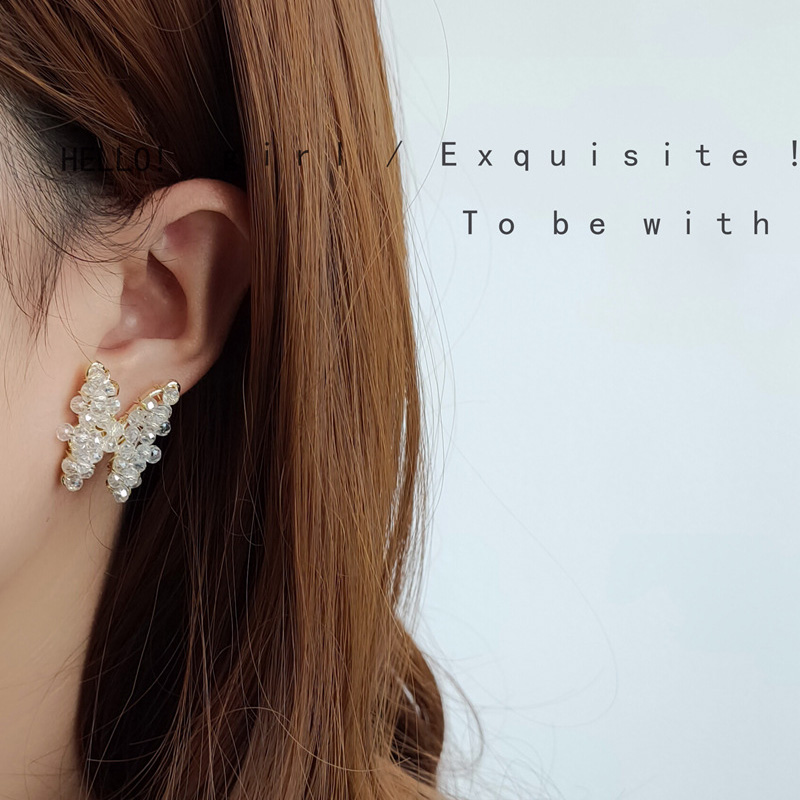 Handcraft knitting shiny crystal butterfly earring net red temperament simple earnails personality tree branch fashion and ear decoration