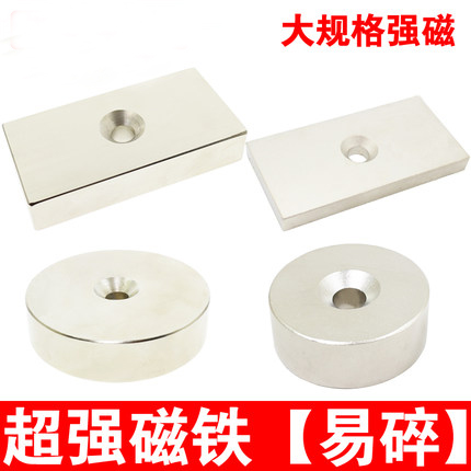 Strong magnet neodymium iron boron strong magnet rectangular iron magnet high-strength magnet round hole neodymium magnet big strong magnet