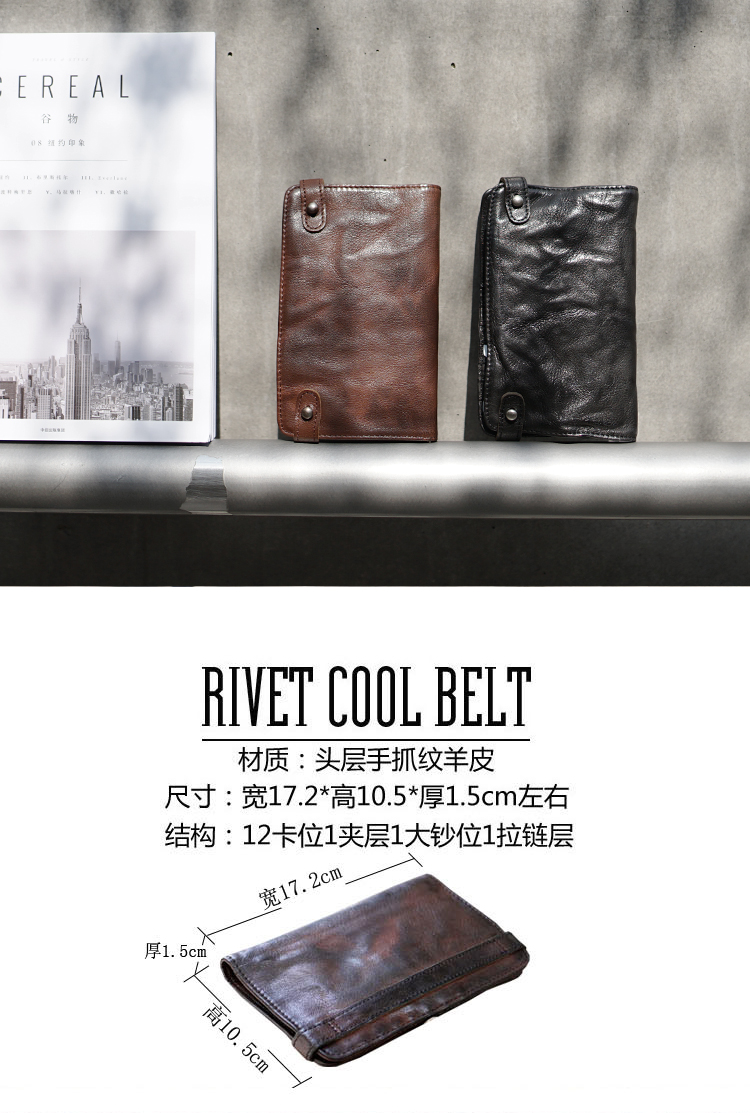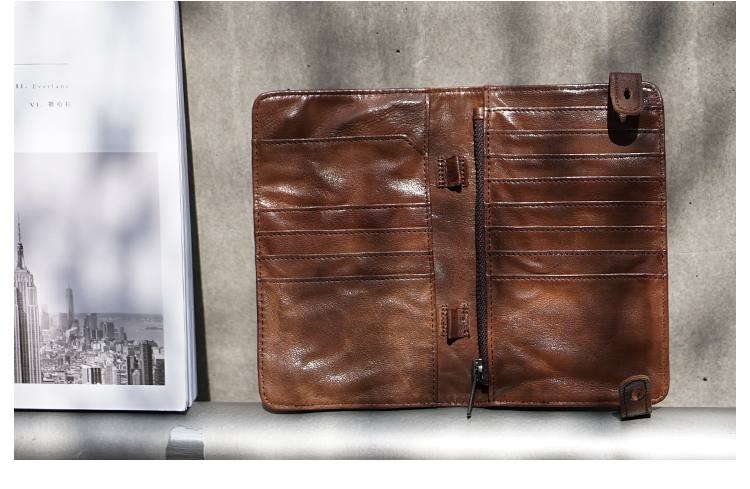 New 2020 retro handmade top layer soft sheepskin genuine leather long section large capacity casual money couple black coffee men's style