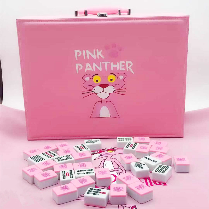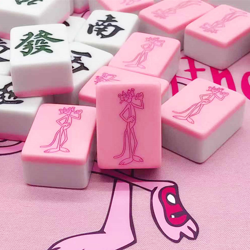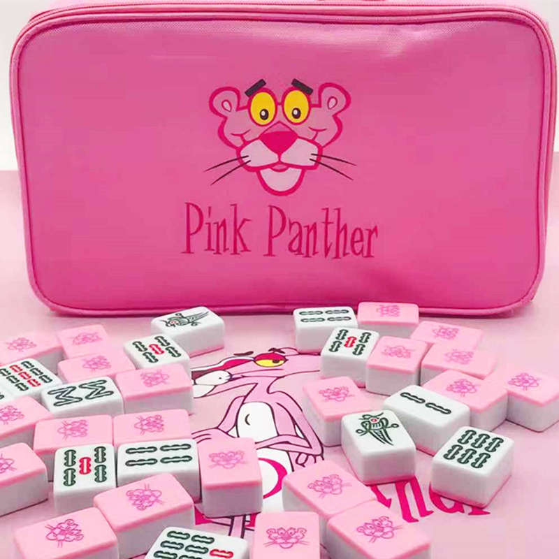 Home Mahjong Cartoon Cute Pink Panther Society with Large Hand Rubbing Mahjong in the Lady - handed Mahjong