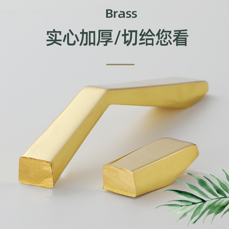 Pure brass American modern minimalist golden wardrobe door handle overall cabinet drawer shoe cabinet door handle Nordic light luxury