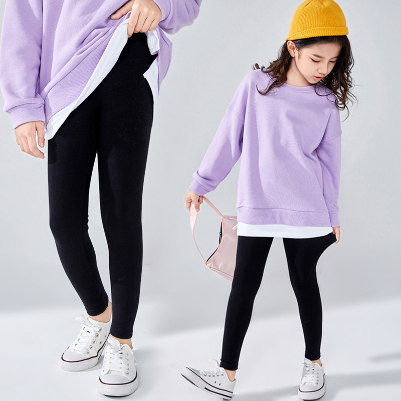 Girls punch pants and spring children's pants wear children's pants in spring baby's white large children's pants black cotton thin
