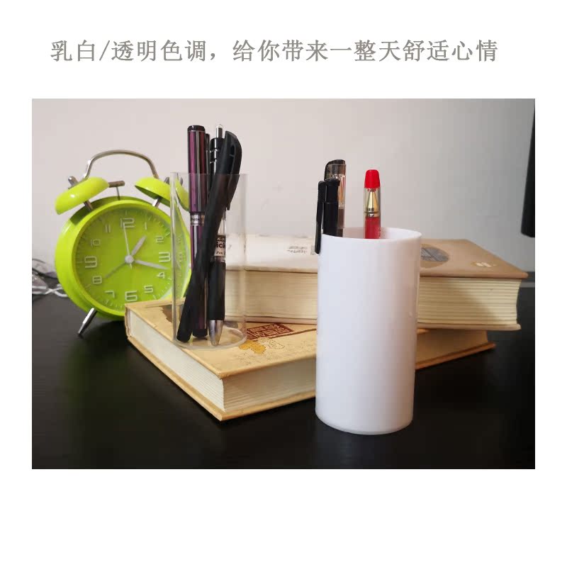 Acrylic Minimalist Round Transparent Pen Holder Student Desk Face Fashion Large Capacity Milk White Pen Barrel Stationery Supplies