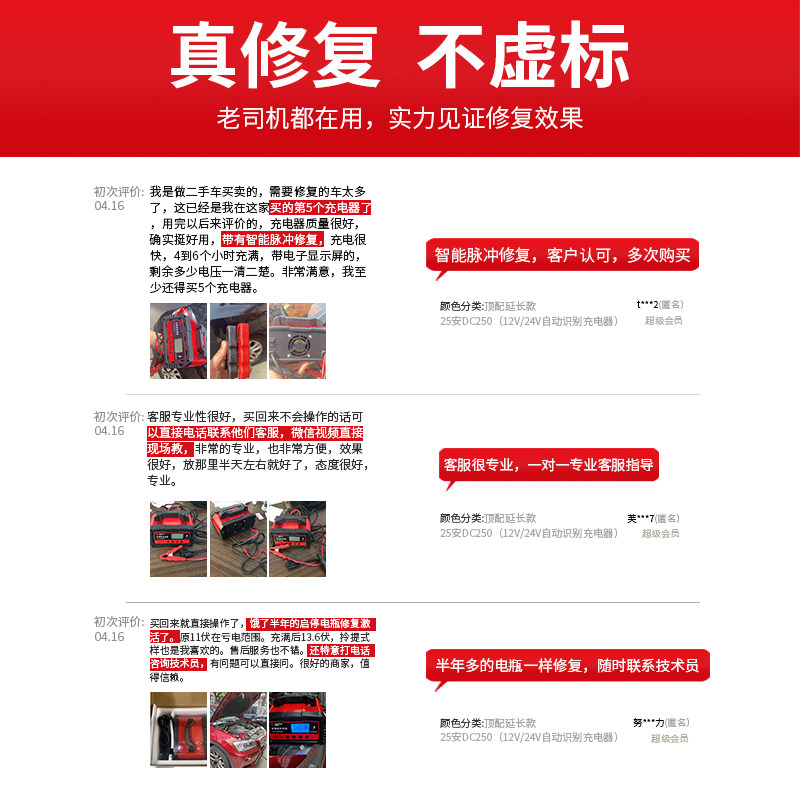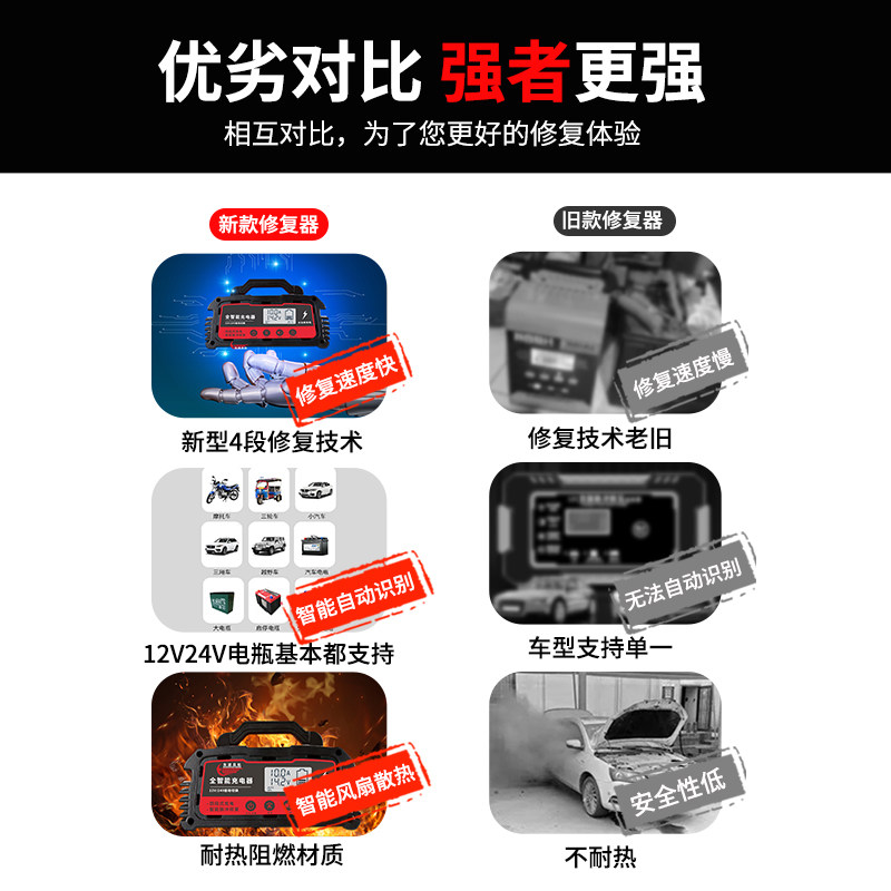 Special fully automatic intelligent 12v24v high power pure copper intelligent pulse repairing device for car battery charger