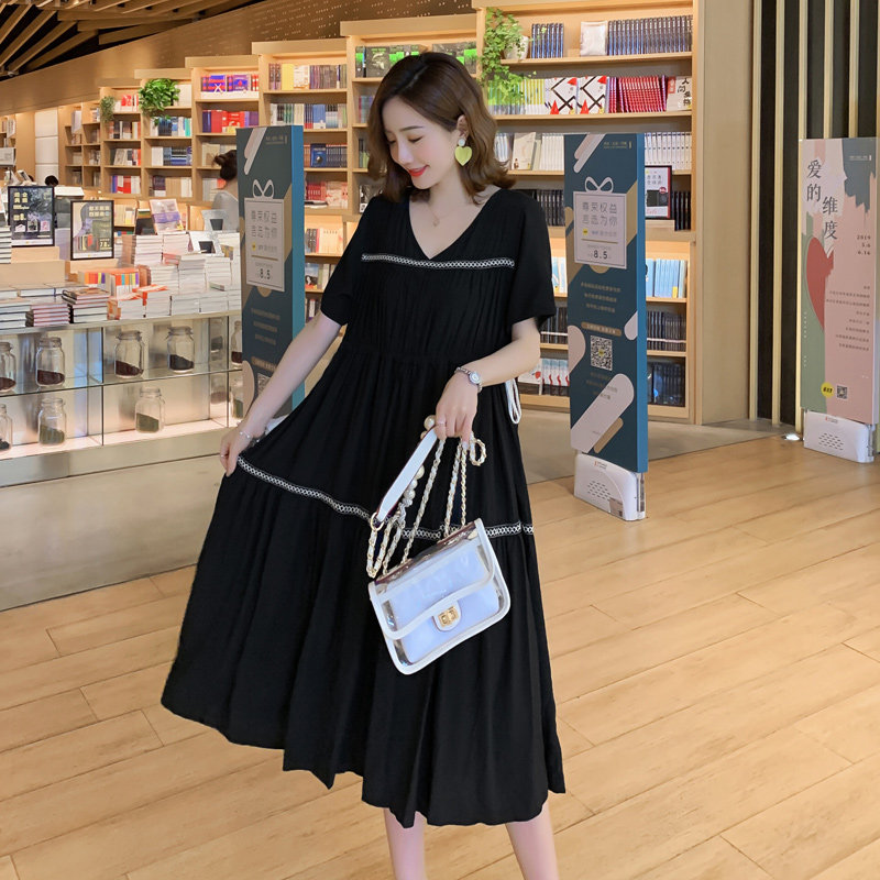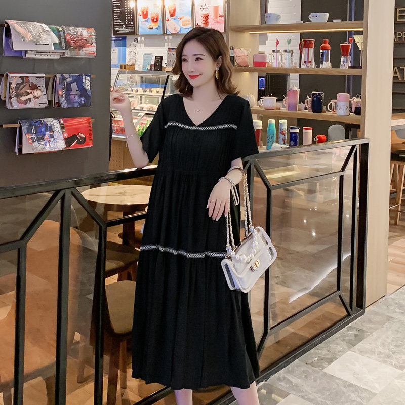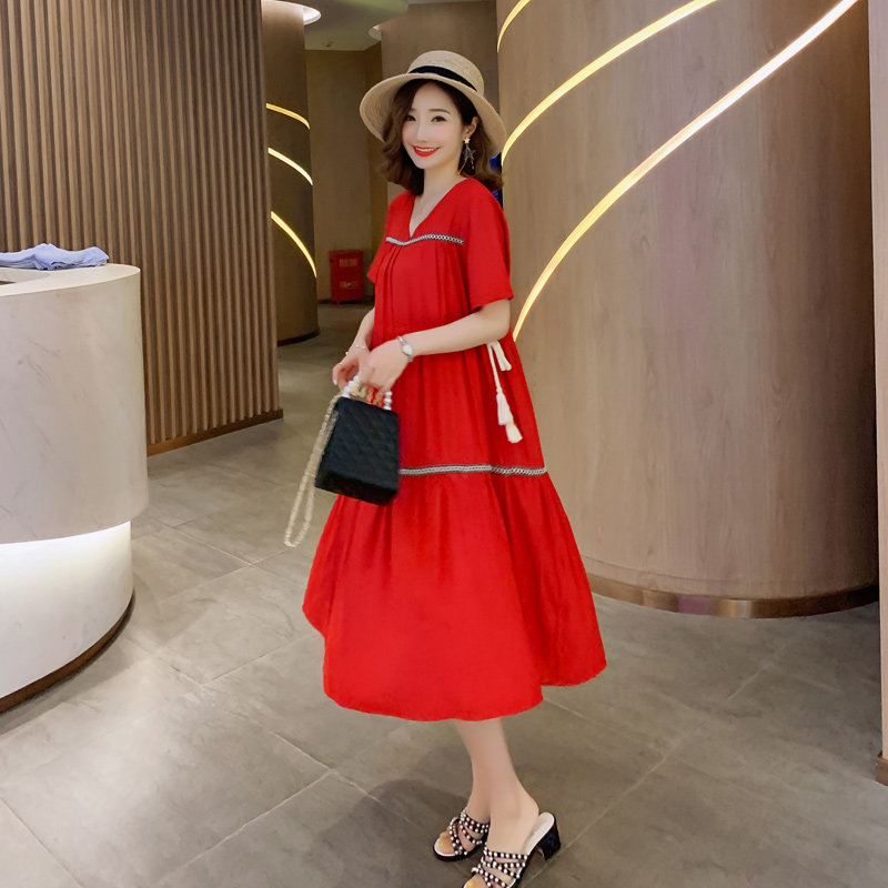 Fat plus size maternity dress 2020 summer national style pregnant cotton short-sleeved dress 200 pounds