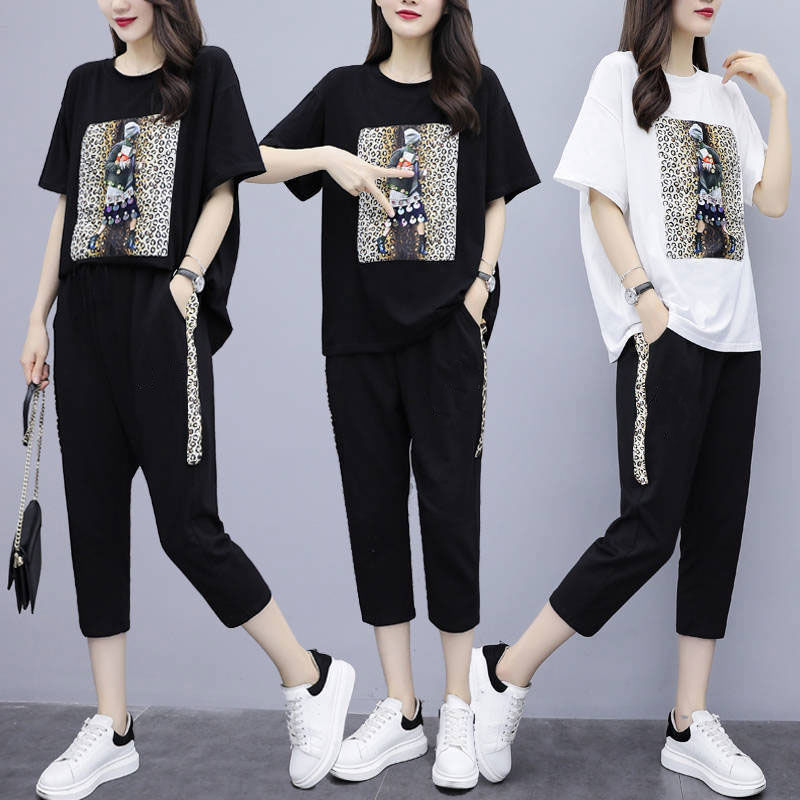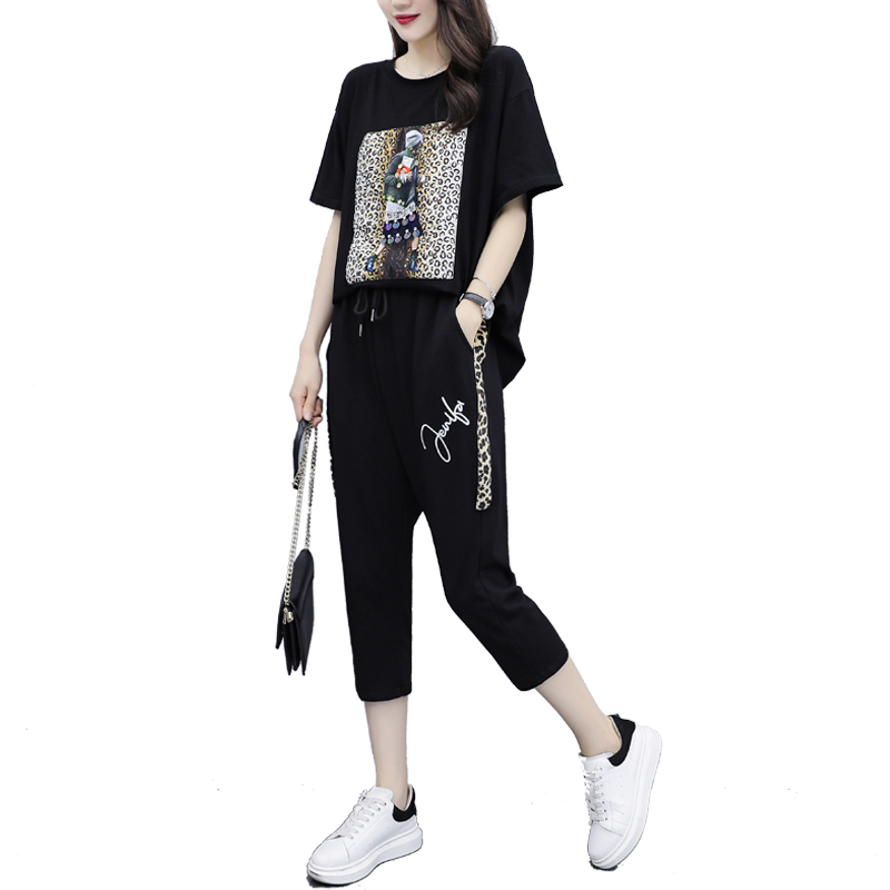 Fat sister slim suit large size 2022 summer shade fashion and age loose coat seven - piece sets