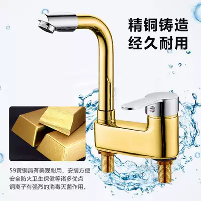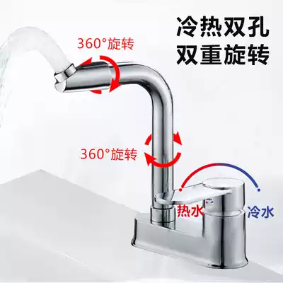 All copper double hole hot and cold faucet old faucet washbasin basin bathroom household three holes mixed water