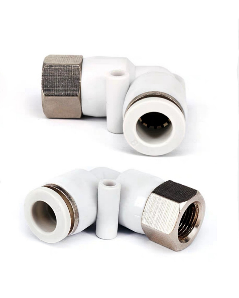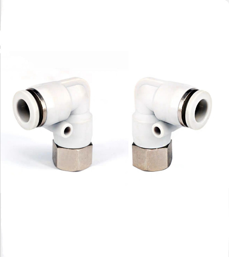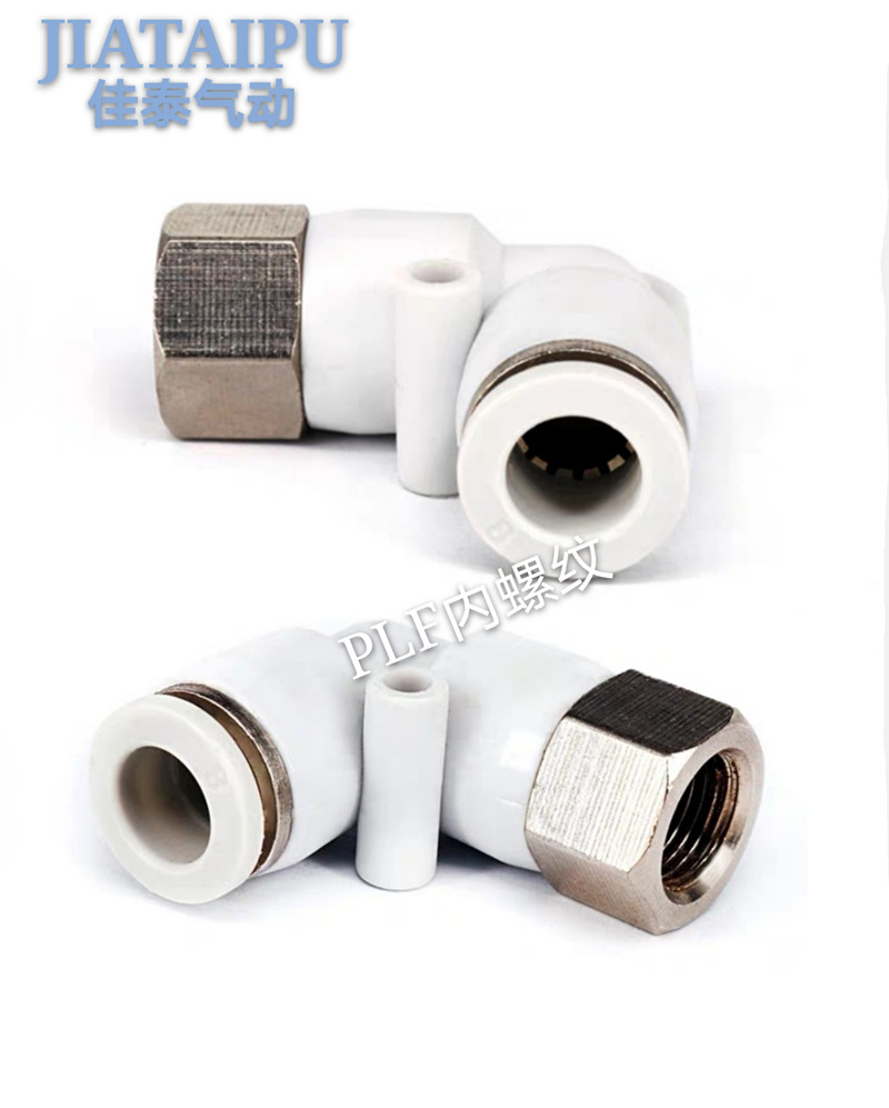 Pneumatic quick elbow trachea connector inner thread quick plug inner wire connector PLF4 6 8 10 white L-type two-way