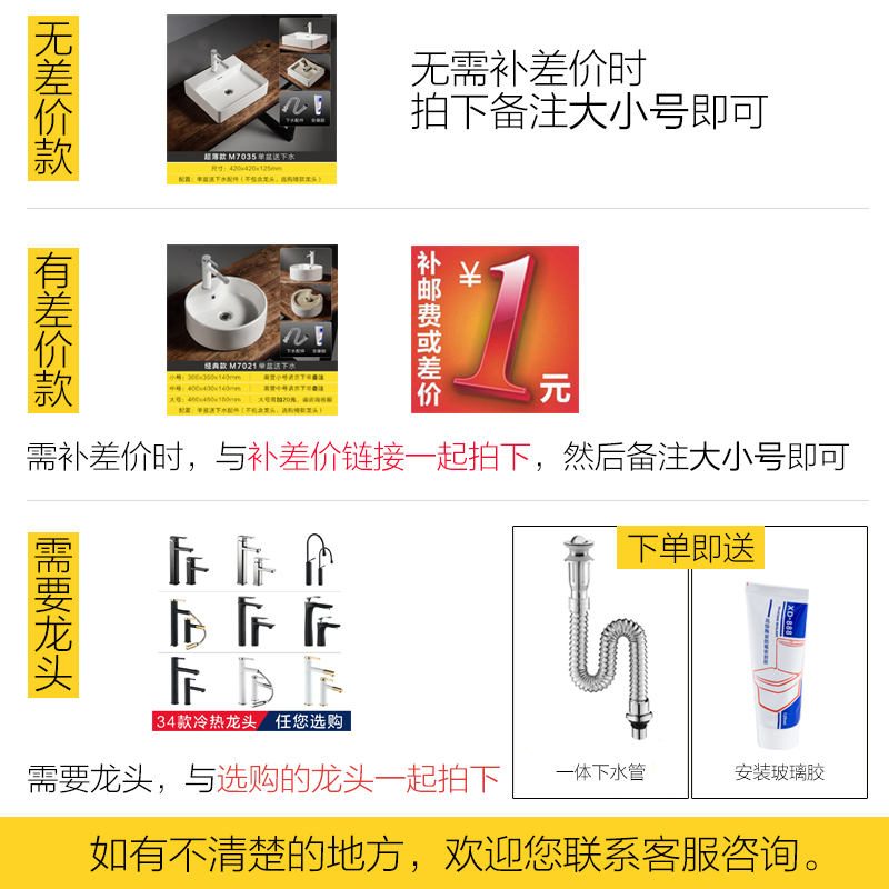 M7011 (single basin to send water) M7012 (remarks for the same price of size) M7013 (plus 30 yuan for large size) M7014 (remarks for the same price of large, medium and small) M7015 (size