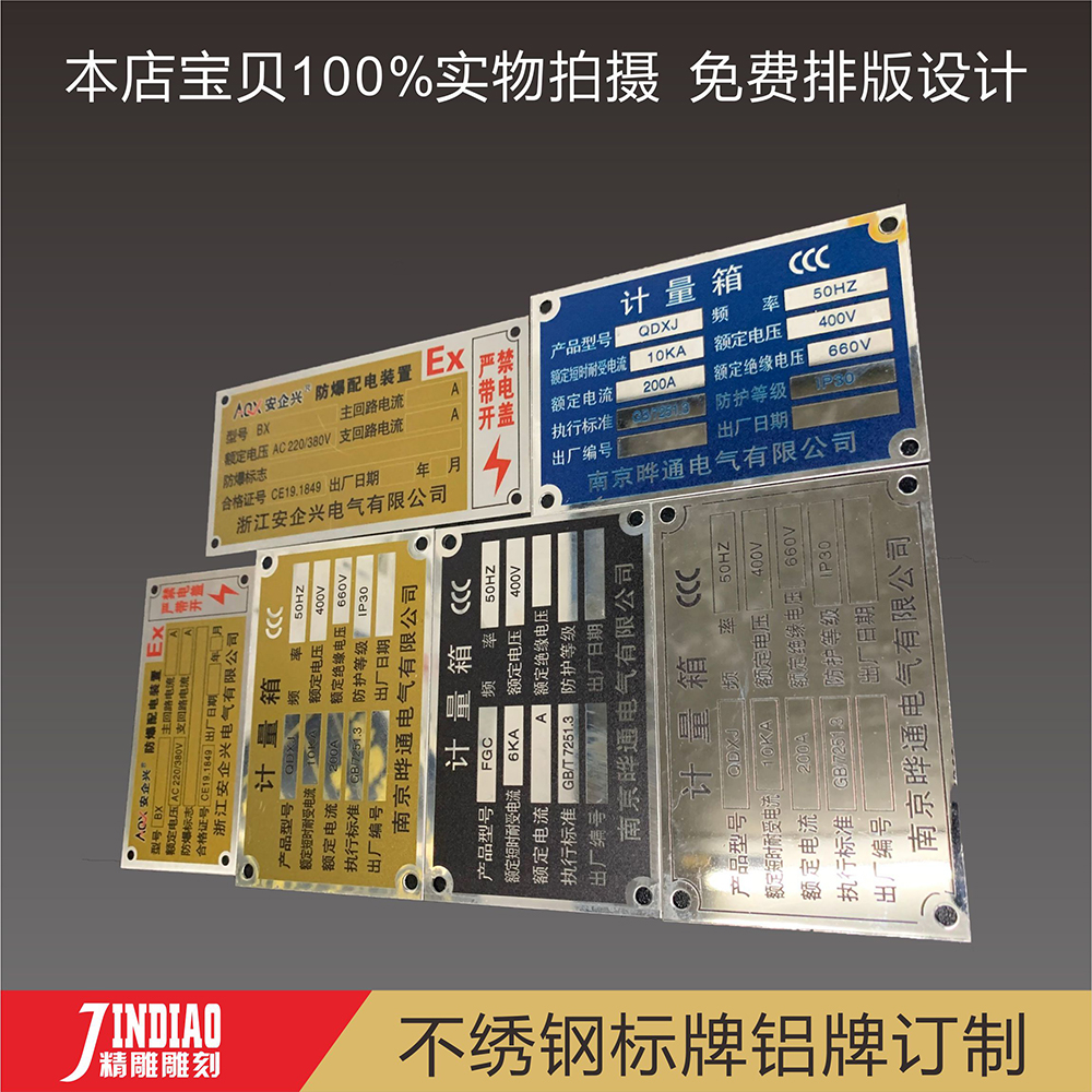 Non-embroidered steel aluminum copper plastic signage distribution box signage custom equipment electrical machine nameplate box variable shell laser