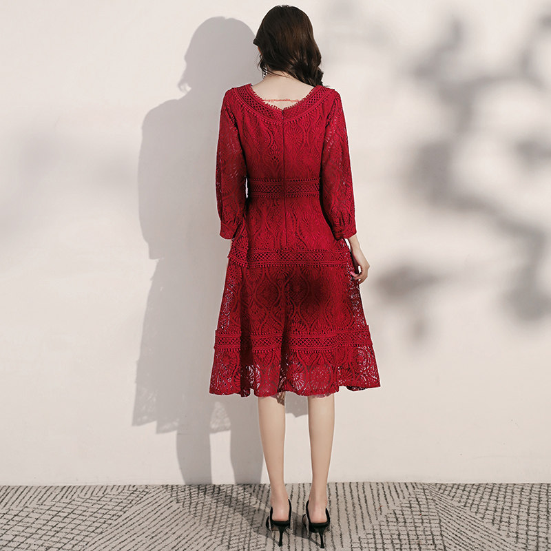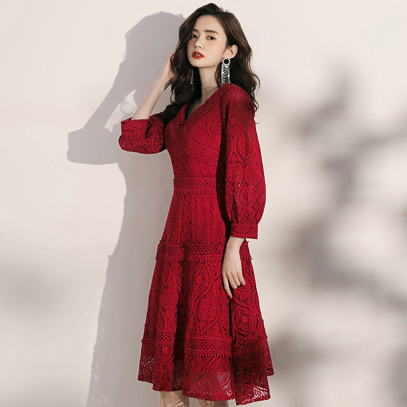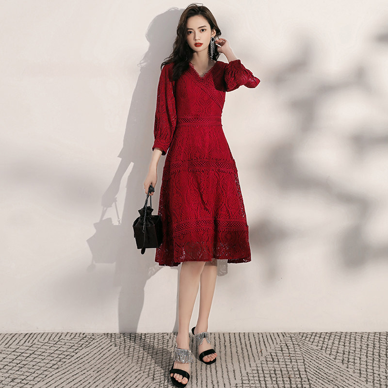 Toast dress back door wine red can usually be worn bridal small dress Female wedding dress Lace engagement dress Summer
